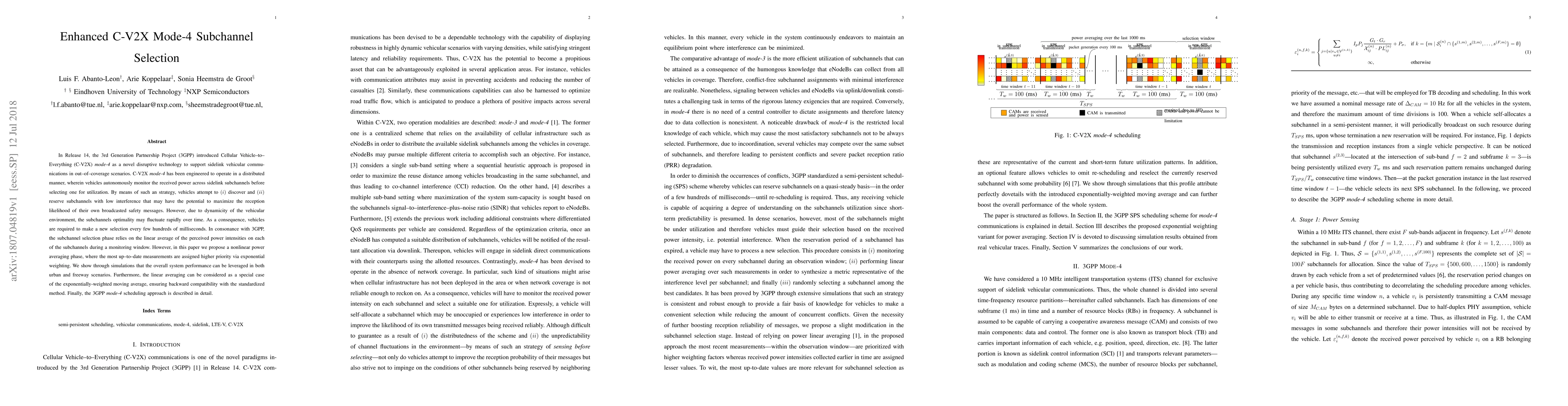 In Release 14, the 3rd Generation Partnership Project (3GPP) introduced Cellular Vehicle--to--Everything (C-V2X) \textit{mode-4} as a novel disruptive technology to support sidelink vehicular communications in out--of--coverage scenarios. C-V2X \textit{mode-4} has been engineered to operate in a distributed manner, wherein vehicles autonomously monitor the received power across sidelink subchannels before selecting one for utilization. By means of such an strategy, vehicles attempt to $(i)$ discover and $(ii)$ reserve subchannels with low interference that may have the potential to maximize the reception likelihood of their own broadcasted safety messages. However, due to dynamicity of the vehicular environment, the subchannels optimality may fluctuate rapidly over time. As a consequence, vehicles are required to make a new selection every few hundreds of milliseconds. In consonance with 3GPP, the subchannel selection phase relies on the linear average of the perceived power intensities on each of the subchannels during a monitoring window. However, in this paper we propose a nonlinear power averaging phase, where the most up--to--date measurements are assigned higher priority via exponential weighting. We show through simulations that the overall system performance can be leveraged in both urban and freeway scenarios. Furthermore, the linear averaging can be considered as a special case of the exponentially-weighted moving average, ensuring backward compatibility with the standardized method. Finally, the 3GPP \textit{mode-4} scheduling approach is described in detail.
