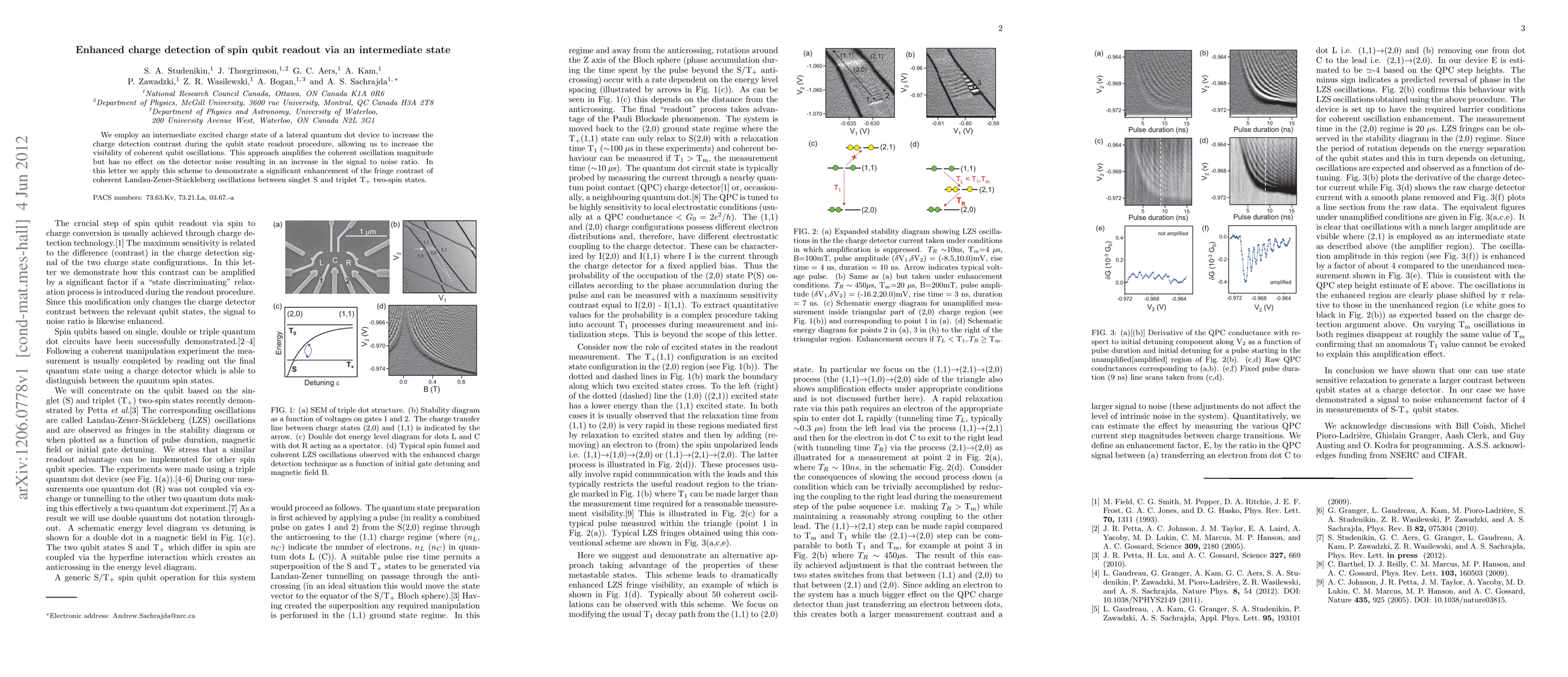 Researchers enhanced charge detection of spin qubits by using an intermediate excited state to amplify coherent oscillations without increasing detector noise, resulting in improved signal-to-noise ratio.