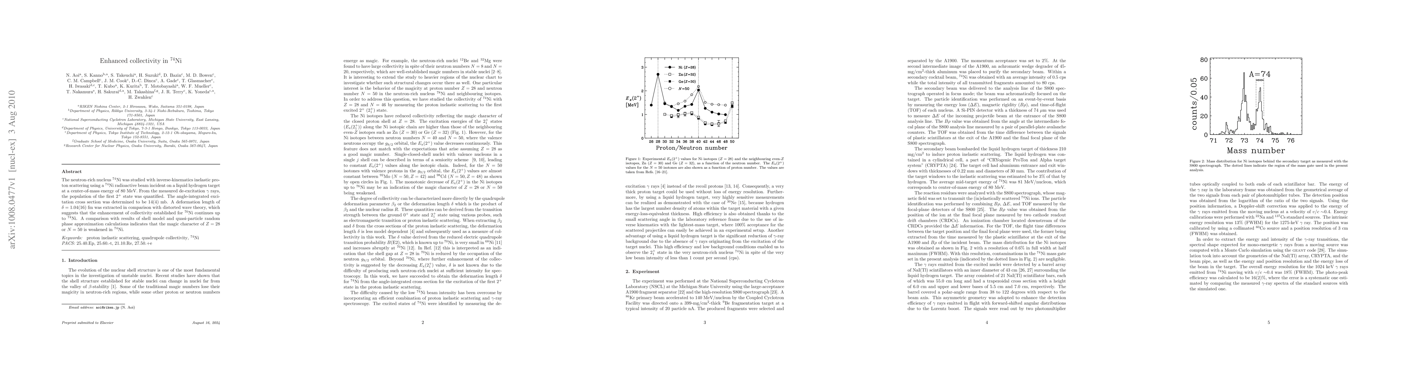 The neutron-rich nucleus 74Ni was studied with inverse-kinematics inelastic proton scattering using a 74Ni radioactive beam incident on a liquid hydrogen targetat a center-of-mass energy of 80 MeV. From the measured de-excitation gamma-rays, the population of the first 2+ state was quantified. The angle-integrated excitation cross section was determined to be 14(4) mb. A deformation length of delta = 1.04(16) fm was extracted in comparison with distorted wave theory, which suggests that the enhancement of collectivity established for 70Ni continues up to 74Ni. A comparison with results of shell model and quasi-particle random phase approximation calculations indicates that the magic character of Z = 28 or N = 50 is weakened in 74Ni.