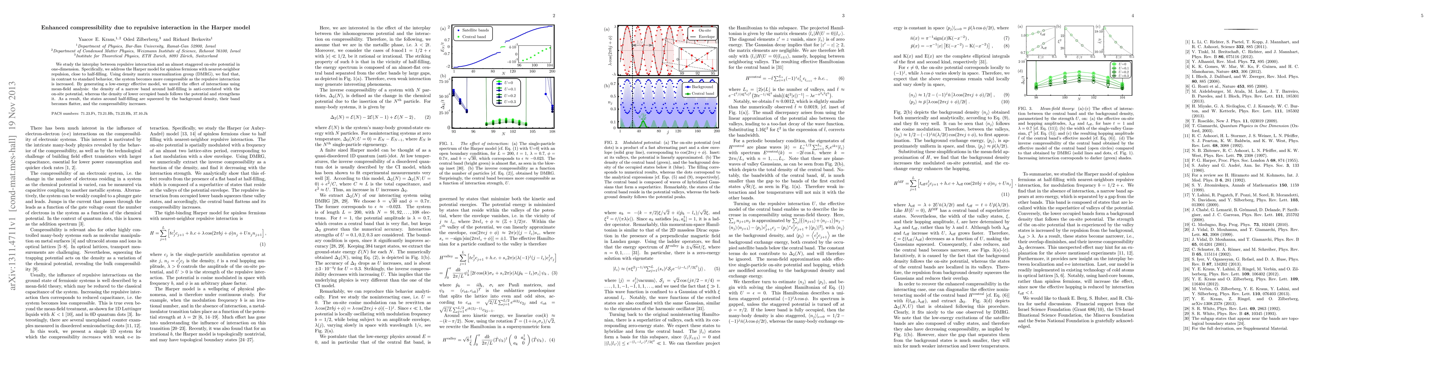 This study reveals that in the Harper model with repulsive interactions near half-filling, the system paradoxically becomes more compressible as repulsion increases. Through DMRG and mean-field analysis, it is found that the density of states around half-filling is anti-correlated with the on-site potential, leading to increased compressibility.