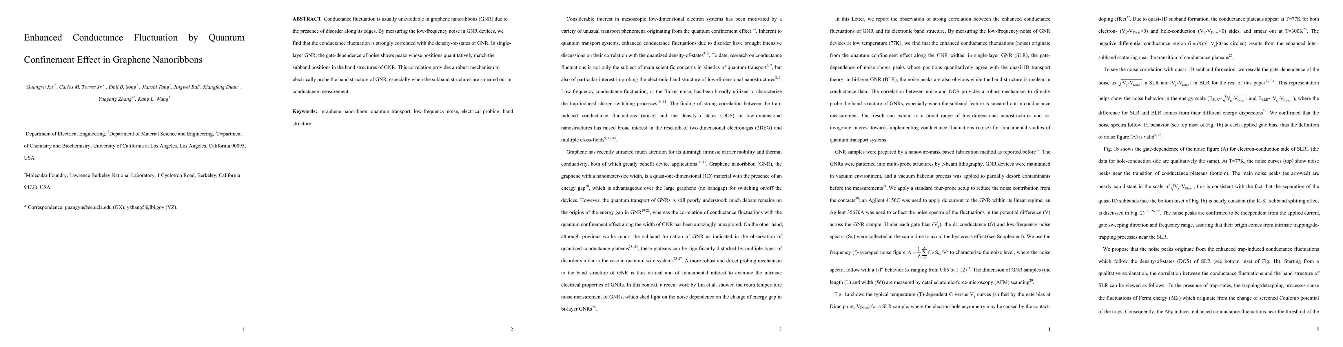 Conductance fluctuation is usually unavoidable in graphene nanoribbons (GNR) due to the presence of disorder along its edges. By measuring the low-frequency noise in GNR devices, we find that the conductance fluctuation is strongly correlated with the density-of-states of GNR. In single-layer GNR, the gate-dependence of noise shows peaks whose positions quantitatively match the subband positions in the band structures of GNR. This correlation provides a robust mechanism to electrically probe the band structure of GNR, especially when the subband structures are smeared out in conductance measurement.