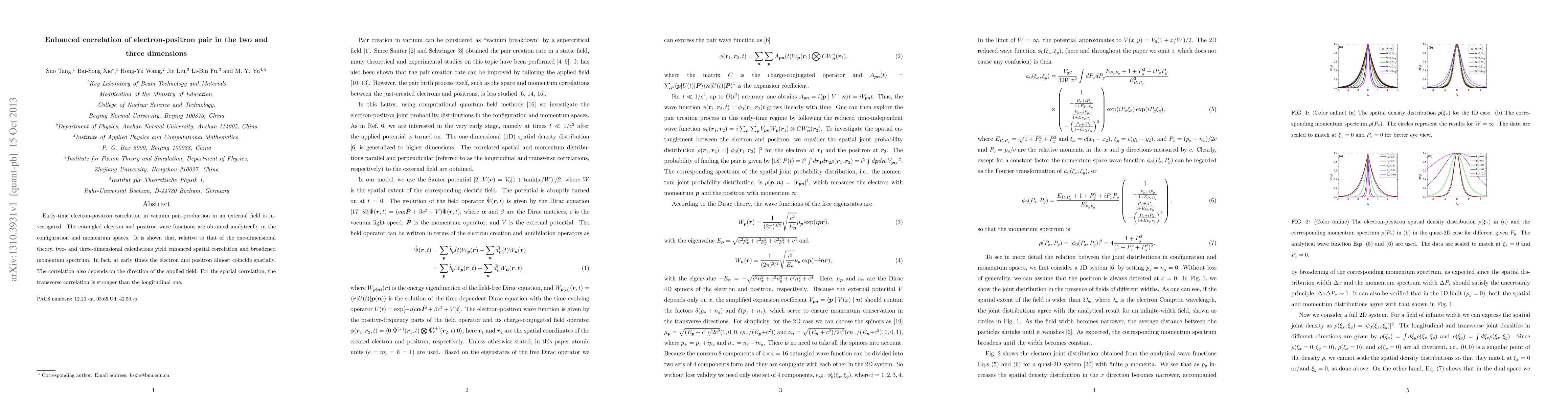 This research investigates early-time electron-positron pair correlations in vacuum pair-production under an external field, revealing enhanced spatial correlation and a broadened momentum spectrum in two and three dimensions compared to one-dimensional theory. The correlation is stronger transversely and depends on the applied field direction.