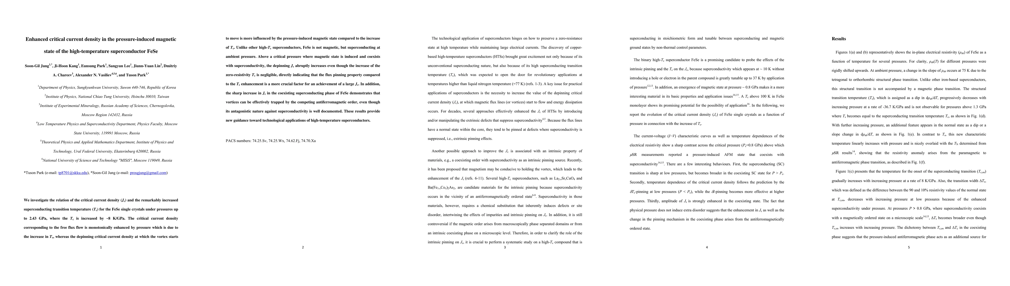 Researchers discovered that applying pressure to FeSe superconductor increases its critical current density by 8K/GPa, suggesting a new path for high-temperature superconductors.