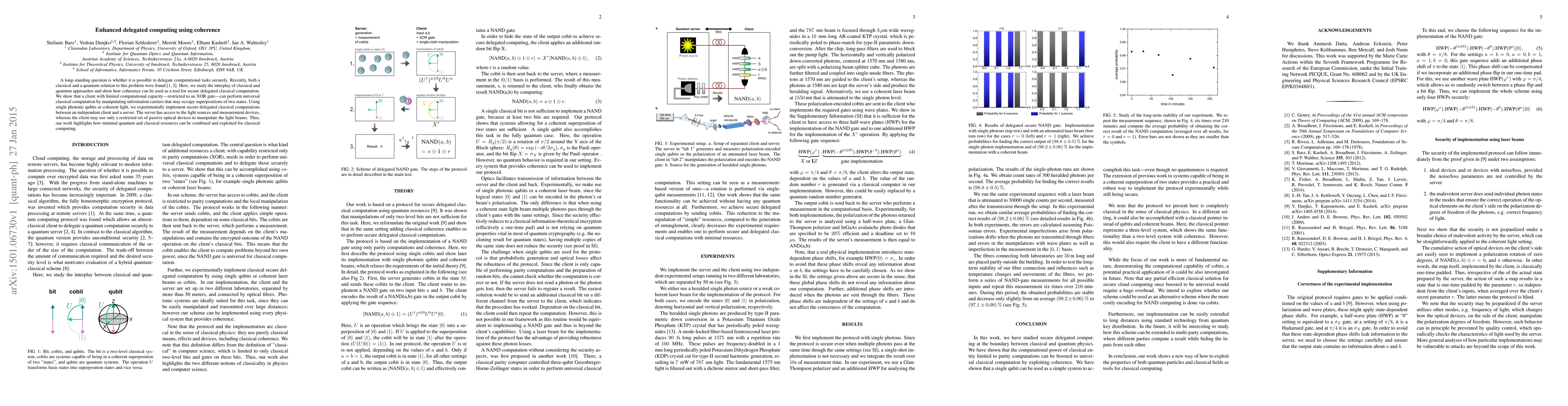 This paper explores the secure delegation of classical computational tasks using quantum coherence, demonstrating that a client with limited computational ability can perform universal classical computation via manipulation of quantum information carriers. Experimentally, it implements secure delegated computations using photonic qubits and coherent light, showcasing the potential of combining minimal quantum and classical resources.