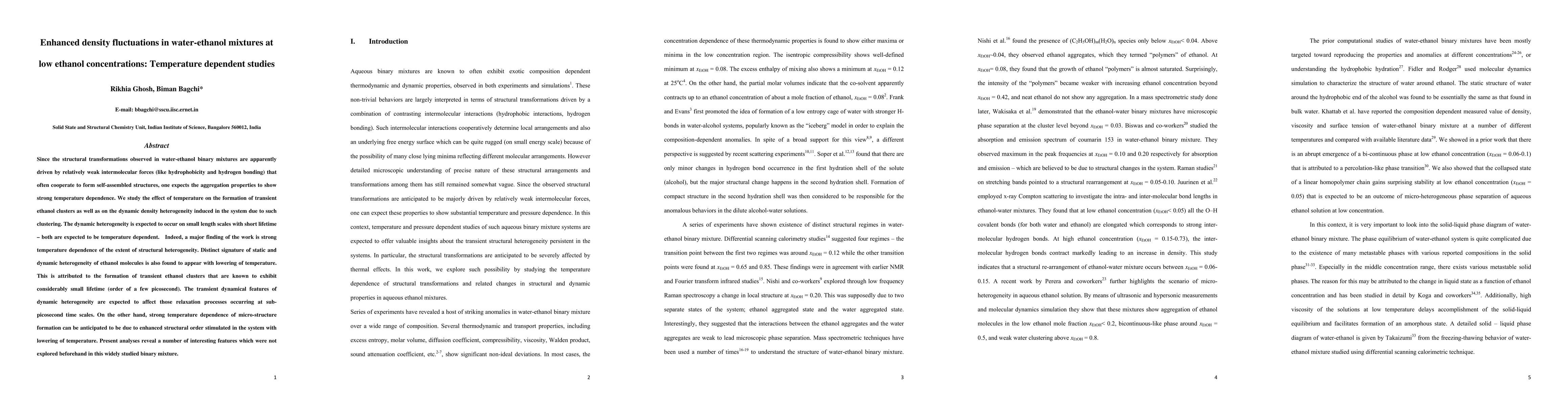 This study investigates the temperature-dependent structural transformations in water-ethanol mixtures, revealing strong temperature dependence in the formation of transient ethanol clusters and dynamic density heterogeneity. The research highlights the emergence of static and dynamic heterogeneity signatures at lower temperatures, attributed to the formation of short-lived ethanol clusters.