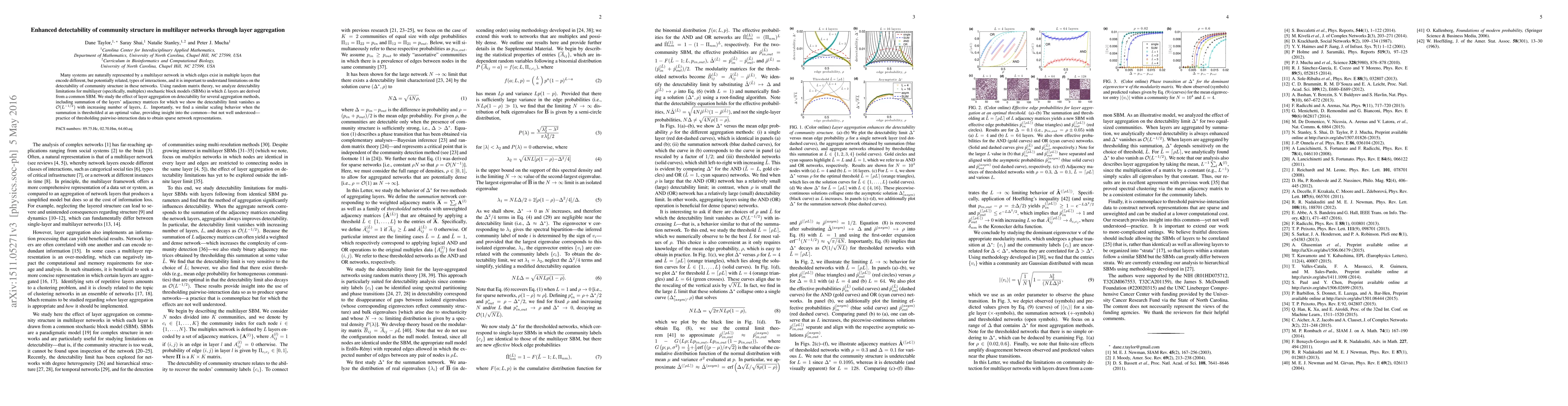 This paper investigates the detectability of community structures in multilayer networks using random matrix theory, focusing on multiplex stochastic block models. It finds that layer aggregation, particularly through summation of adjacency matrices, enhances detectability, with detectability limits diminishing as O(L^{-1/2}) with more layers, L.