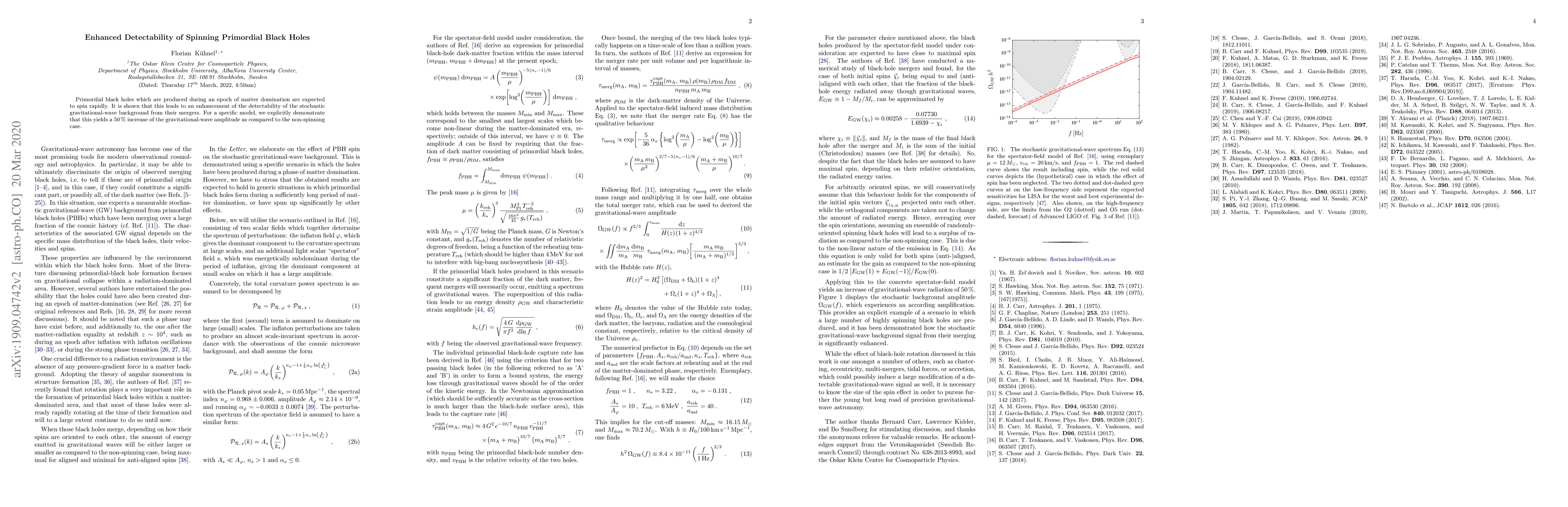 Summary: This paper demonstrates that rapidly spinning primordial black holes enhance the detectability of gravitational waves from their mergers, showing a $50\,\%$ increase in amplitude compared to non-spinning cases, thereby improving the identification of these ancient cosmic objects.