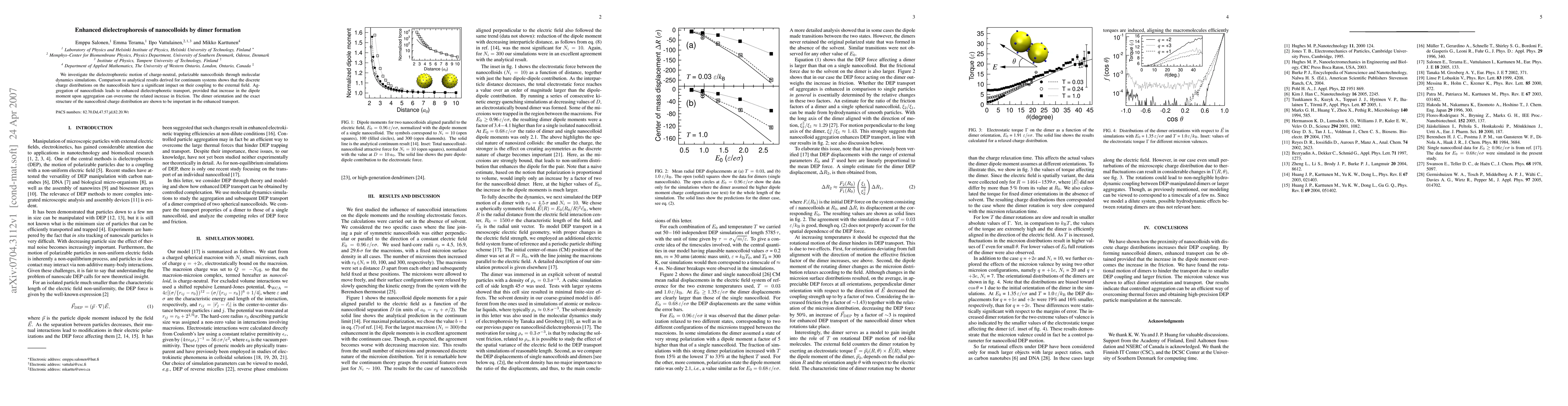 We investigate the dielectrophoretic motion of charge-neutral, polarizable nanocolloids through molecular dynamics simulations. Comparison to analytical results derived for continuum systems shows that the discrete charge distributions on the nanocolloids have a significant impact on their coupling to the external field. Aggregation of nanocolloids leads to enhanced dielectrophoretic transport, provided that increase in the dipole moment upon aggregation can overcome the related increase in friction. The dimer orientation and the exact structure of the nanocolloid charge distribution are shown to be important in the enhanced transport.
