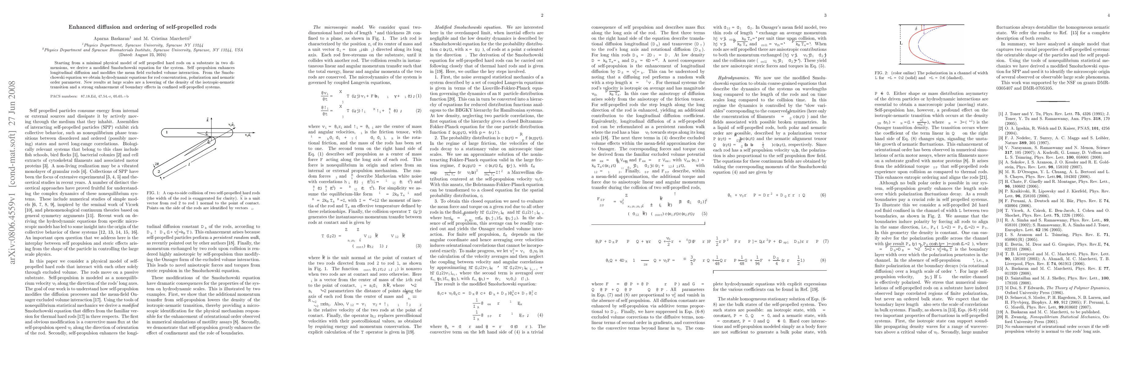 This paper develops a modified Smoluchowski equation for self-propelled rods, revealing enhanced longitudinal diffusion and modified interaction effects. It predicts a lowered isotropic-nematic transition density and significant boundary effects in confined systems.