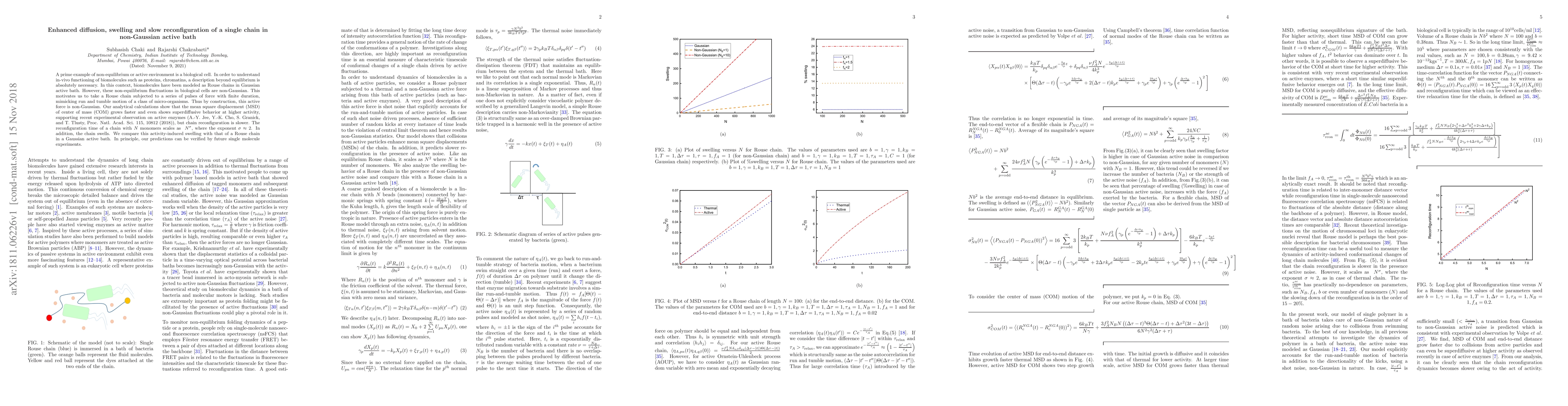 This paper investigates the dynamics of a Rouse chain in a non-Gaussian active bath, finding enhanced diffusion and swelling, along with slower reconfiguration compared to Gaussian baths. The model captures non-equilibrium fluctuations in biological cells, predicting superdiffusive behavior and a reconfiguration time scaling as N^2.