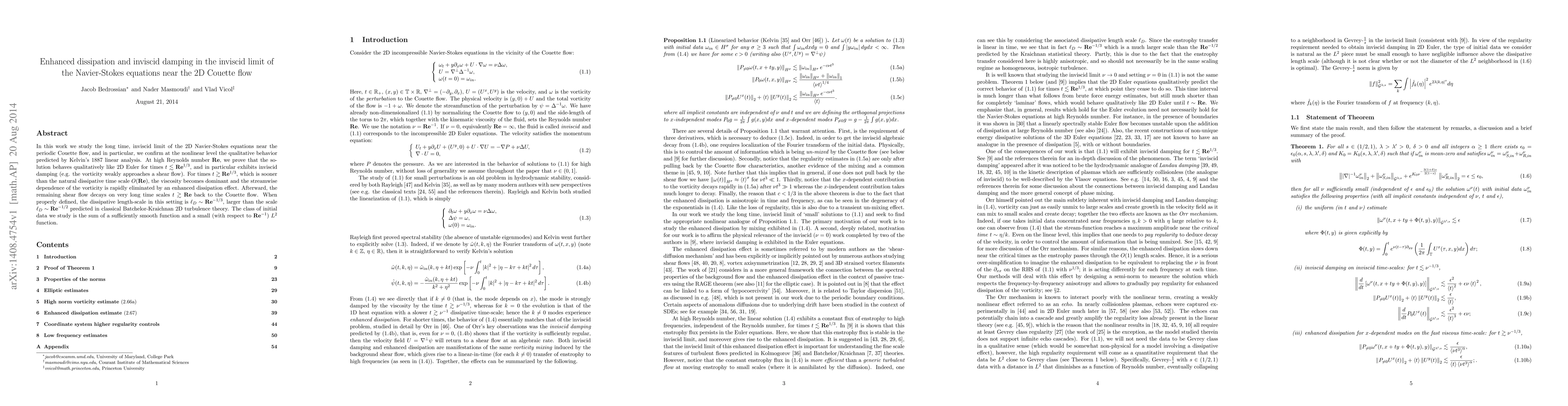 In this work we study the long time, inviscid limit of the 2D Navier-Stokes equations near the periodic Couette flow, and in particular, we confirm at the nonlinear level the qualitative behavior predicted by Kelvin's 1887 linear analysis. At high Reynolds number Re, we prove that the solution behaves qualitatively like 2D Euler for times t \lesssim Re^(1/3), and in particular exhibits inviscid damping (e.g. the vorticity weakly approaches a shear flow). For times t \gtrsim Re^(1/3), which is sooner than the natural dissipative time scale O(Re), the viscosity becomes dominant and the streamwise dependence of the vorticity is rapidly eliminated by an enhanced dissipation effect. Afterward, the remaining shear flow decays on very long time scales t \gtrsim Re back to the Couette flow. When properly defined, the dissipative length-scale in this setting is L_D \sim Re^(-1/3), larger than the scale L_D \sim Re^(-1/2) predicted in classical Batchelor-Kraichnan 2D turbulence theory. The class of initial data we study is the sum of a sufficiently smooth function and a small (with respect to Re^(-1)) $L^2$ function.