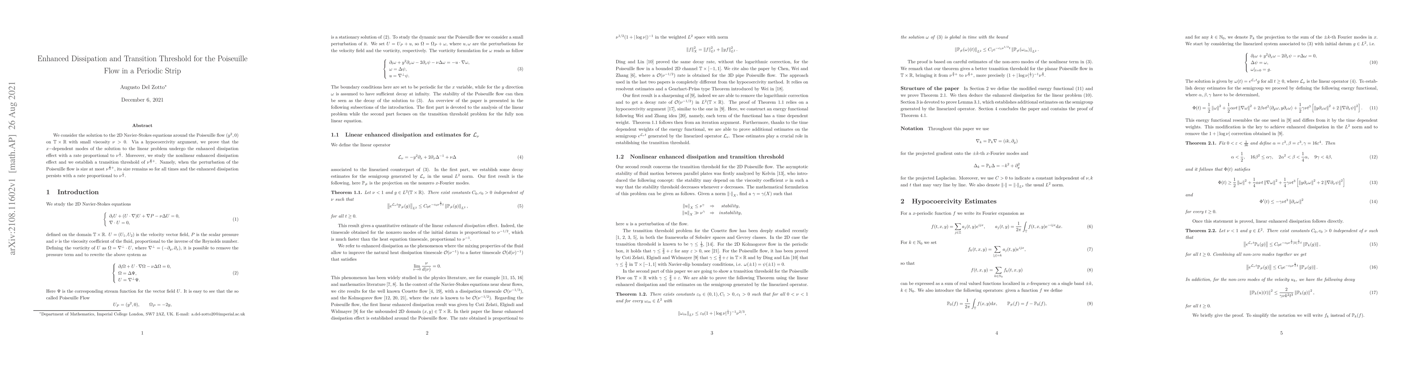 This paper investigates the enhanced dissipation in Poiseuille flow governed by the 2D Navier-Stokes equations, demonstrating that $x$-dependent modes exhibit dissipation proportional to $\nu^{\frac{1}{2}}$. It also establishes a transition threshold for nonlinear effects at $\nu^{\frac{2}{3}+}$, ensuring persistent dissipation under small perturbations.