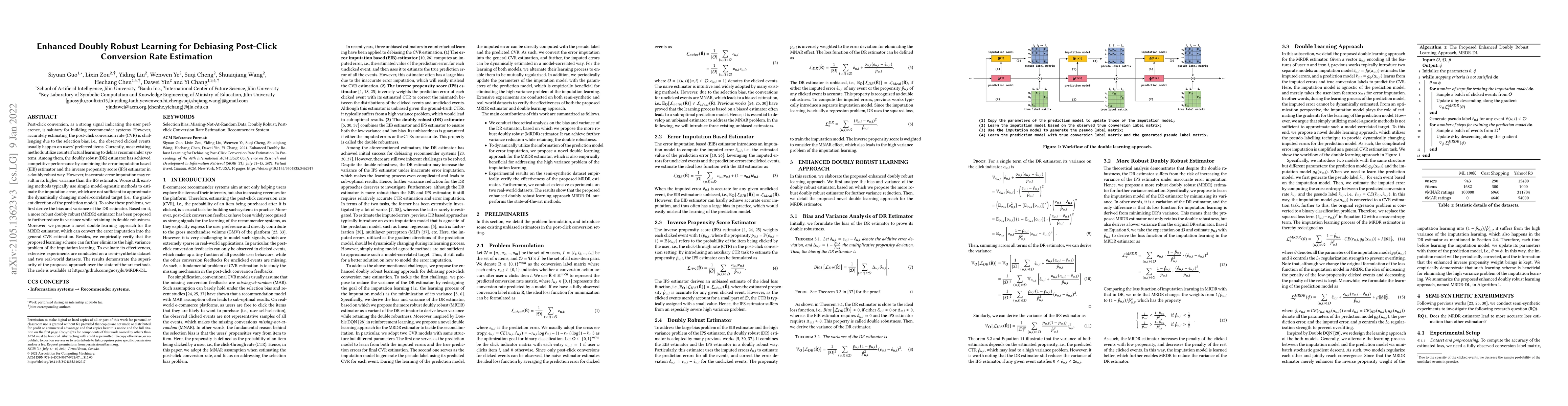 The paper proposes an enhanced doubly robust learning approach (MRDR-DL) for debiasing post-click conversion rate estimation, analyzing the bias and variance of the doubly robust (DR) estimator, and deriving a more robust doubly robust (MRDR) estimator to reduce its variance while retaining double robustness. It also introduces a novel double learning approach for the MRDR estimator.