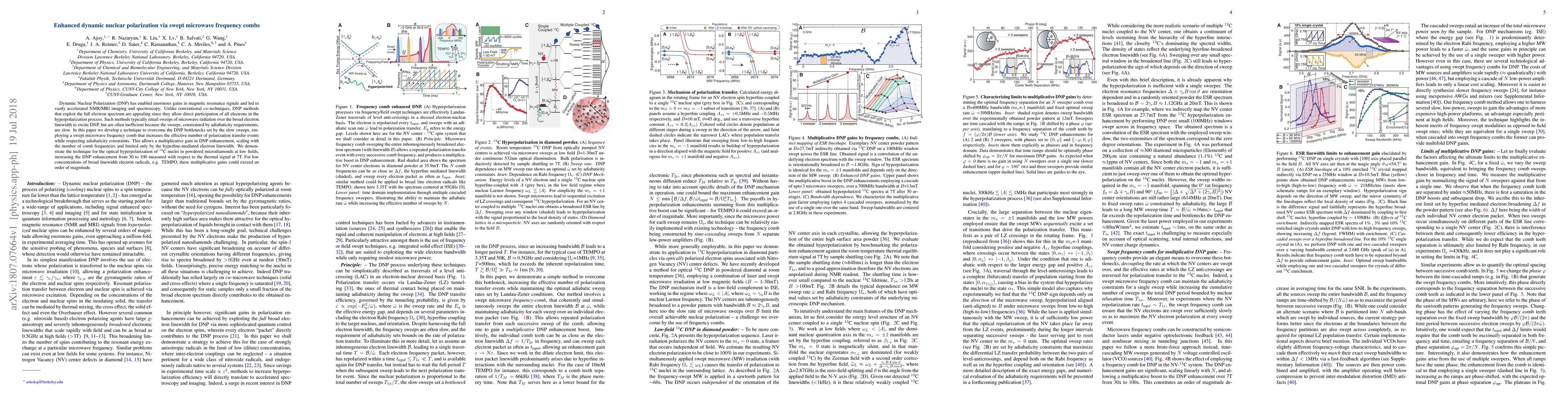 Dynamic Nuclear Polarization (DNP) has enabled enormous gains in magnetic resonance signals and led to vastly accelerated NMR/MRI imaging and spectroscopy. Unlike conventional cw-techniques, DNP methods that exploit the full electron spectrum are appealing since they allow direct participation of all electrons in the hyperpolarization process. Such methods typically entail sweeps of microwave radiation over the broad electron linewidth to excite DNP, but are often inefficient because the sweeps, constrained by adiabaticity requirements, are slow. In this paper we develop a technique to overcome the DNP bottlenecks set by the slow sweeps, employing a swept microwave frequency comb that increases the effective number of polarization transfer events while respecting adiabaticity constraints. This allows a multiplicative gain in DNP enhancement, scaling with the number of comb frequencies and limited only by the hyperfine-mediated electron linewidth. We demonstrate the technique for the optical hyperpolarization of 13C nuclei in powdered microdiamonds at low fields, increasing the DNP enhancement from 30 to 100 measured with respect to the thermal signal at 7T. For low concentrations of broad linewidth electron radicals, e.g. TEMPO, these multiplicative gains could exceed an order of magnitude.