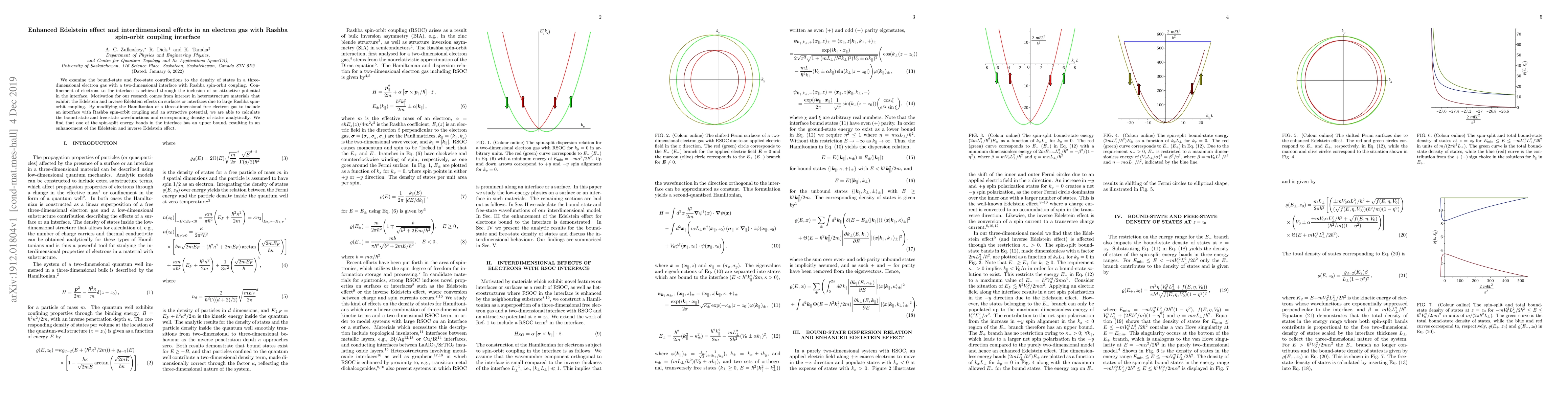 Summary: This study investigates the density of states in a 3D electron gas with a 2D interface featuring Rashba spin-orbit coupling, revealing enhanced Edelstein effects due to an upper bound in one of the spin-split energy bands at the interface. The research focuses on heterostructure materials with large Rashba spin-orbit coupling.