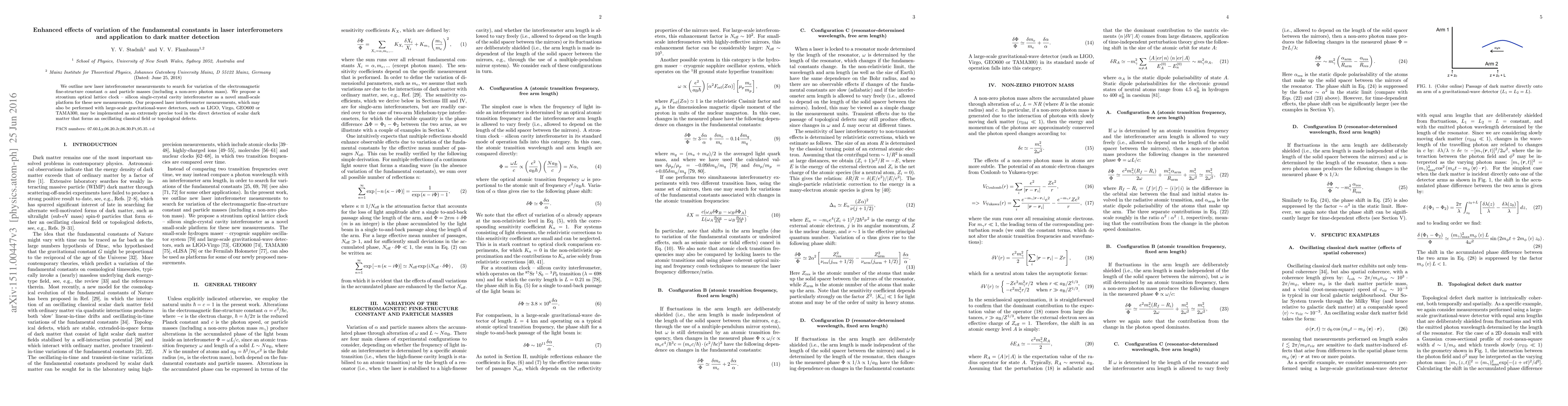 We outline new laser interferometer measurements to search for variation of the electromagnetic fine-structure constant $\alpha$ and particle masses (including a non-zero photon mass). We propose a strontium optical lattice clock -- silicon single-crystal cavity interferometer as a novel small-scale platform for these new measurements. Multiple passages of a light beam inside an interferometer enhance the effects due to variation of the fundamental constants by the mean number of passages ($N_{\textrm{eff}} \sim 10^2$ for a large-scale gravitational-wave detector, such as LIGO, Virgo, GEO600 or TAMA300, while $N_{\textrm{eff}} \sim 10^5$ for a strontium clock -- silicon cavity interferometer). Our proposed laser interferometer measurements may be implemented as an extremely precise tool in the direct detection of scalar dark matter that forms an oscillating classical field or topological defects.