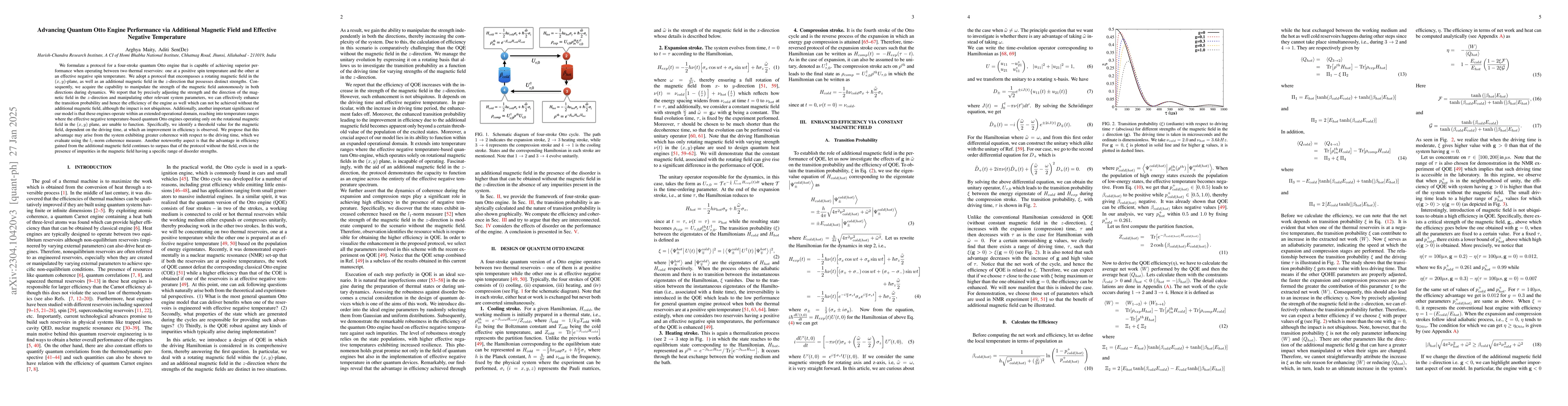 This paper investigates how an additional magnetic field in the z-direction enhances the efficiency of a quantum Otto engine, particularly when operated between thermal reservoirs with positive and effective negative spin temperatures. The study finds that efficiency increases with the magnetic field strength, though not uniformly, and identifies a threshold value that maximizes efficiency, likely due to increased coherence.
