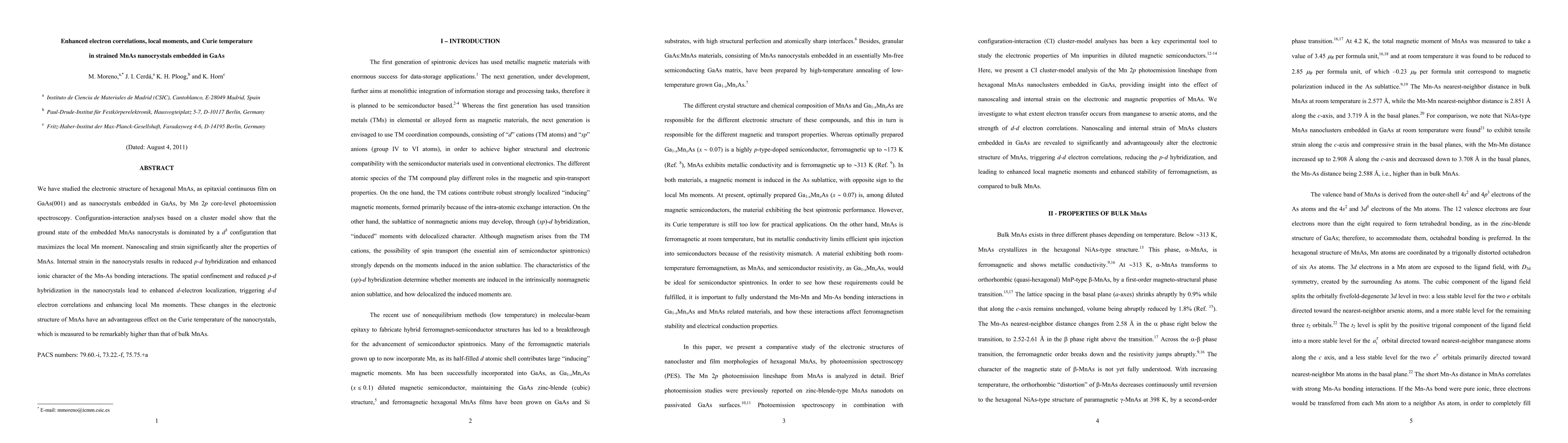 This study reveals that strained MnAs nanocrystals embedded in GaAs exhibit enhanced electron correlations and local moments due to reduced p-d hybridization and increased d-electron localization, resulting in a significantly higher Curie temperature compared to bulk MnAs.