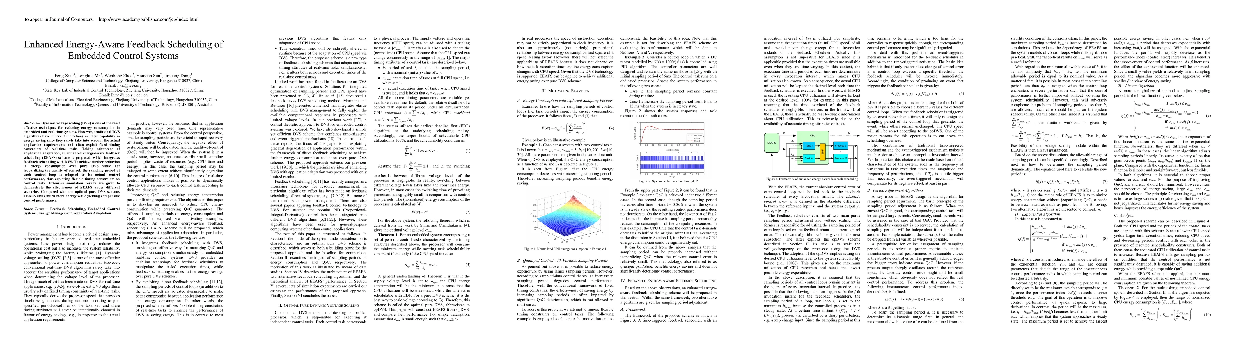 This paper proposes an enhanced energy-aware feedback scheduling (EEAFS) scheme that integrates dynamic voltage scaling (DVS) with adaptive feedback scheduling to reduce energy consumption in embedded control systems. The approach adapts the sampling period of control loops based on actual performance, achieving significant energy savings while maintaining control quality.