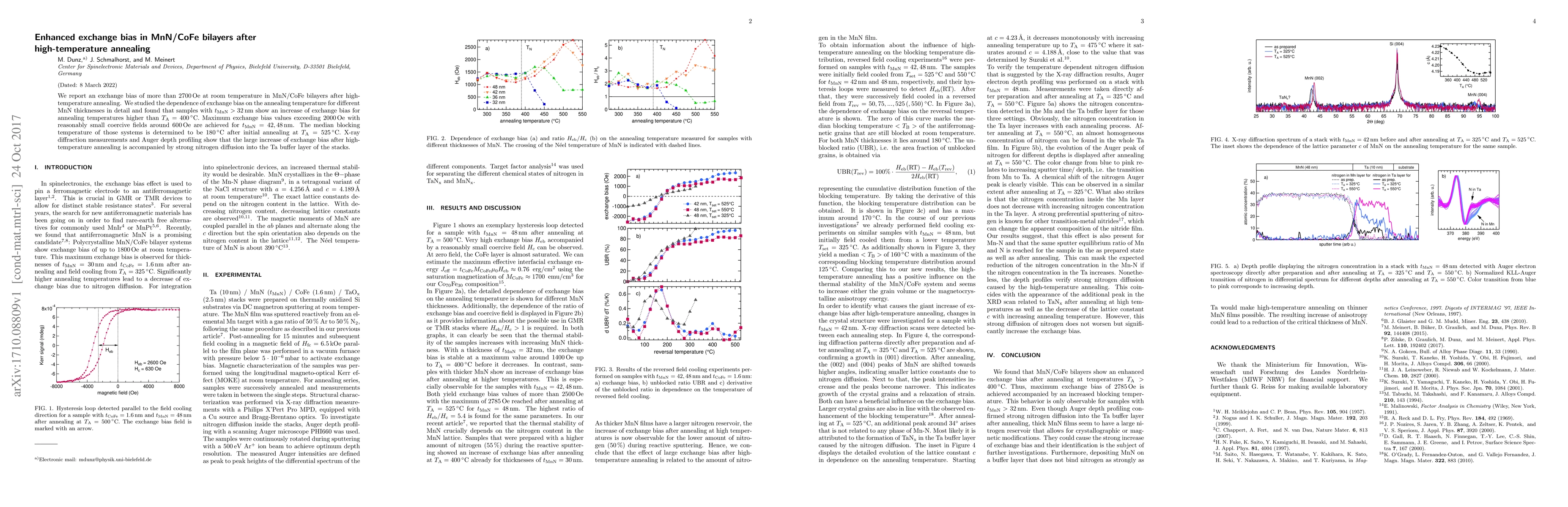 The paper presents a method for enhancing exchange bias in MnN/CoFe bilayers through high-temperature annealing, attributed to strong nitrogen diffusion into the Ta buffer layer.