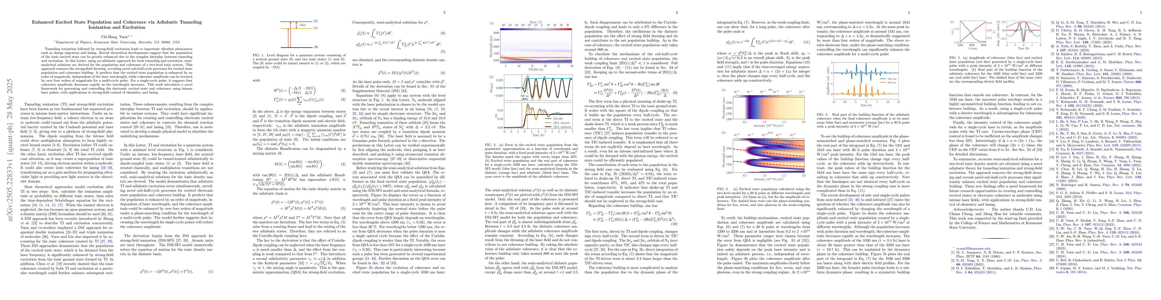 The research presents a new perspective on enhancing excited state population and coherence via adiabatic tunneling ionization and excitation, revealing sub-half-cycle processes and offering a novel framework for strong-field control of chemistry and lasing.