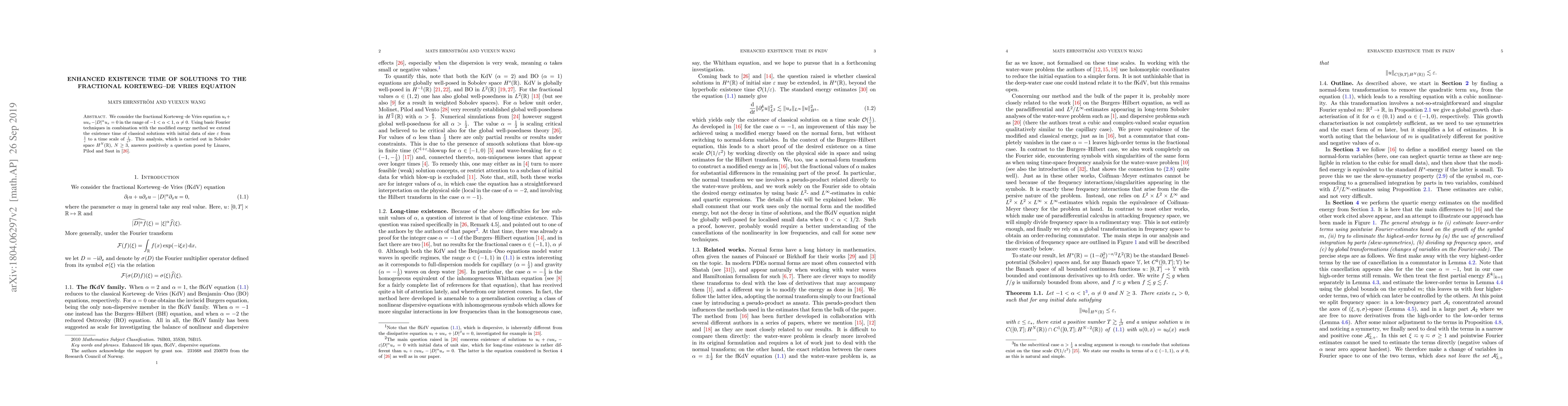 This paper extends the existence time of classical solutions to the fractional Korteweg-de Vries equation using Fourier techniques and the modified energy method, improving the time scale from $\frac{1}{\varepsilon}$ to $\frac{1}{\varepsilon^2}$ for initial data of size $\varepsilon$. This result is achieved in Sobolev space $H^N(\mathbb{R})$, $N \geq 3$.
