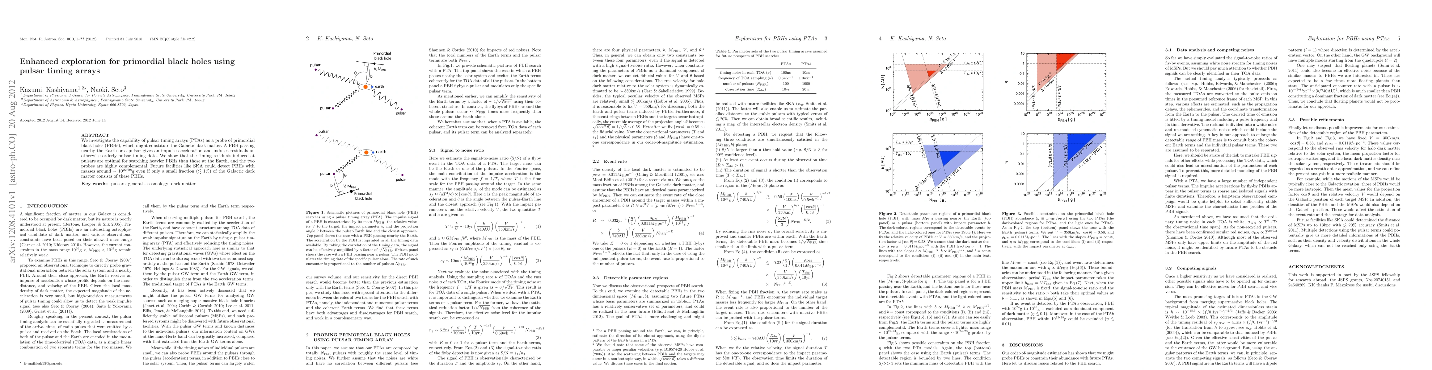 We investigate the capability of pulsar timing arrays (PTAs) as a probe of primordial black holes (PBHs), which might constitute the Galactic dark matter. A PBH passing nearby the Earth or a pulsar gives an impulse acceleration and induces residuals on otherwise orderly pulsar timing data. We show that the timing residuals induced at pulsars are optimal for searching heavier PBHs than those at the Earth, and the two probes are highly complemental. Future facilities like SKA could detect PBHs with masses around 10^(22-28) g even if only a small fraction (< 1%) of the Galactic dark matter consists of these PBHs.