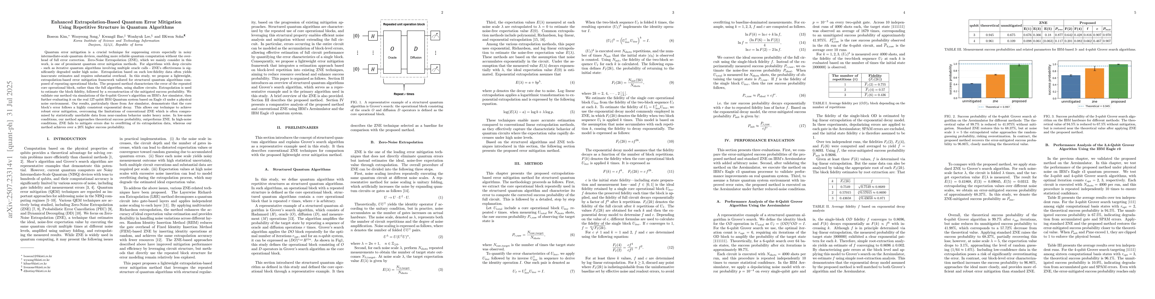 Quantum error mitigation is a crucial technique for suppressing errors especially in noisy intermediate-scale quantum devices, enabling more reliable quantum computation without the overhead of full error correction. Zero-Noise Extrapolation (ZNE), which we mainly consider in this work, is one of prominent quantum error mitigation methods. For algorithms with deep circuits - such as iterative quantum algorithms involving multiple oracle calls - ZNE's effectiveness is significantly degraded under high noise. Extrapolation based on such low-fidelity data often yields inaccurate estimates and requires substantial overhead. In this study, we propose a lightweight, extrapolation-based error mitigation framework tailored for structured quantum algorithms composed of repeating operational blocks. The proposed method characterizes the error of the repeated core operational block, rather than the full algorithm, using shallow circuits. Extrapolation is used to estimate the block fidelity, followed by a reconstruction of the mitigated success probability. We validate our method via simulations of the 6-qubit Grover's algorithm on IBM's Aer simulator, then further evaluating it on the real 127-qubit IBM Quantum system based on Eagle r3 under a physical noise environment. Our results, particularly those from Aer simulator, demonstrate that the core block's error follows a highly consistent exponential decay. This allows our technique to achieve robust error mitigation, overcoming the limitations of conventional ZNE which is often compromised by statistically unreliable data from near-random behavior under heavy noise. In low-noise conditions, our method approaches theoretical success probability, outperforms ZNE. In high-noise conditions, ZNE fails to mitigate errors due to overfitting of its extrapolation data, whereas our method achieves over a 20% higher success probability.