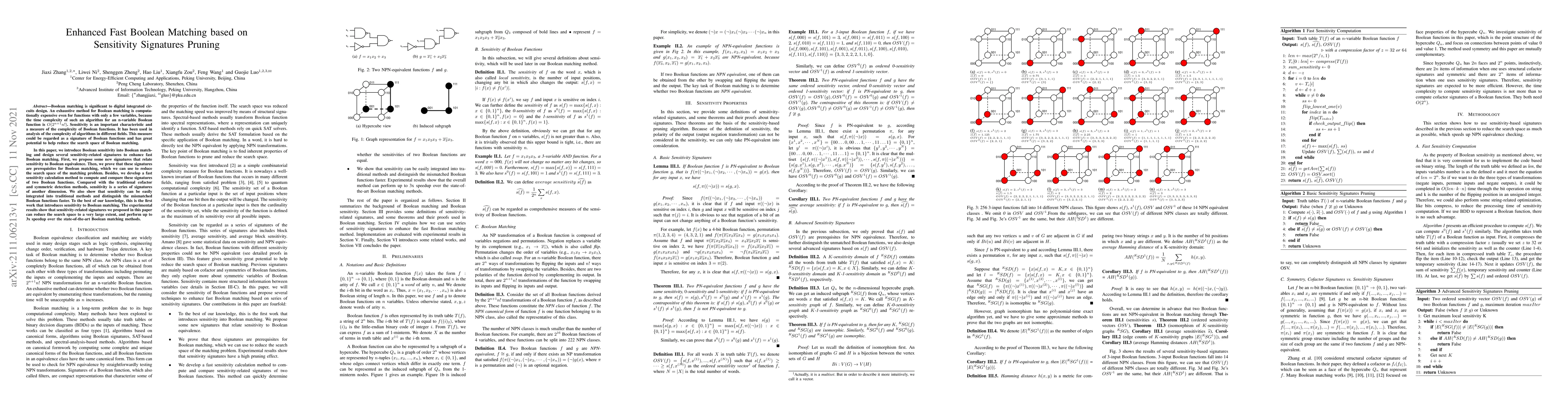 The paper introduces Boolean sensitivity into Boolean matching, proposes sensitivity-related signatures, and develops a fast sensitivity calculation method. It also integrates sensitivity into traditional methods for faster distinction of mismatched Boolean functions.