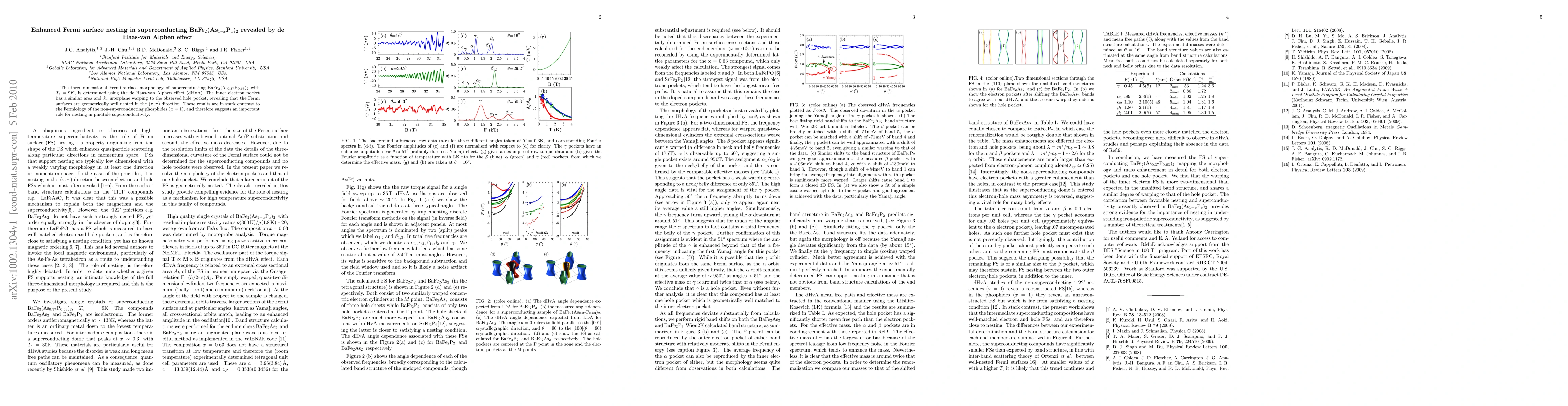 This paper uses the de Haas-van Alphen effect to determine the Fermi surface of superconducting BaFe$_2$(As$_{0.37}$P$_{0.63}$)$_2$ with a critical temperature of 9K. The findings reveal enhanced Fermi surface nesting in the (\pi,\pi) direction, suggesting a crucial role for nesting in the superconductivity of pnictides.