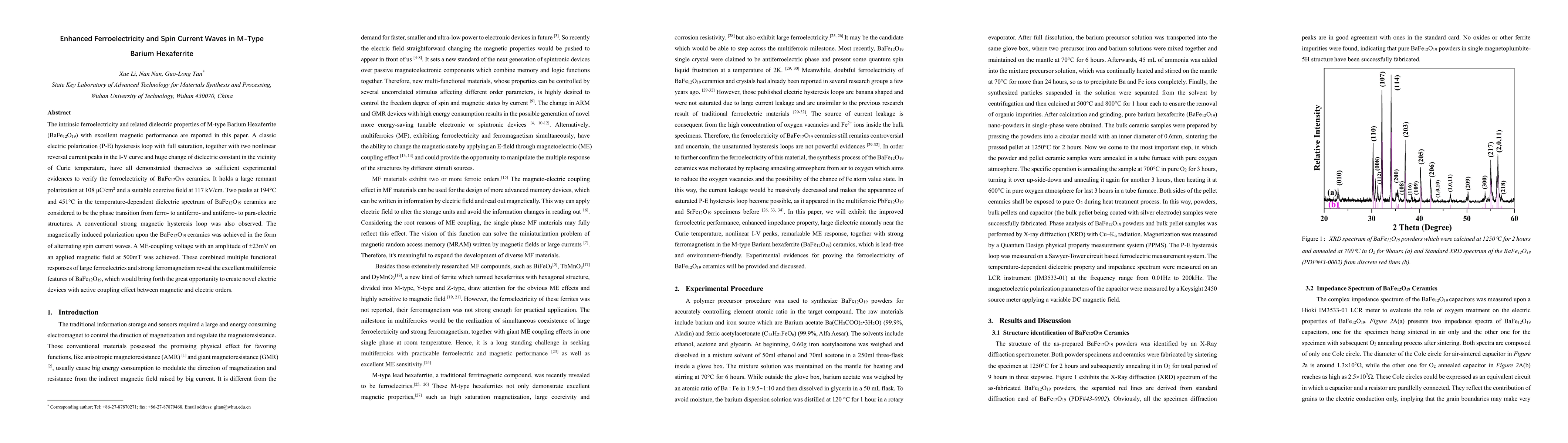 Researchers discovered ferroelectricity in a type of ceramic material called M-type Barium Hexaferrite, exhibiting strong magnetic properties and unique electrical responses, including spin current waves and multiferroic features.