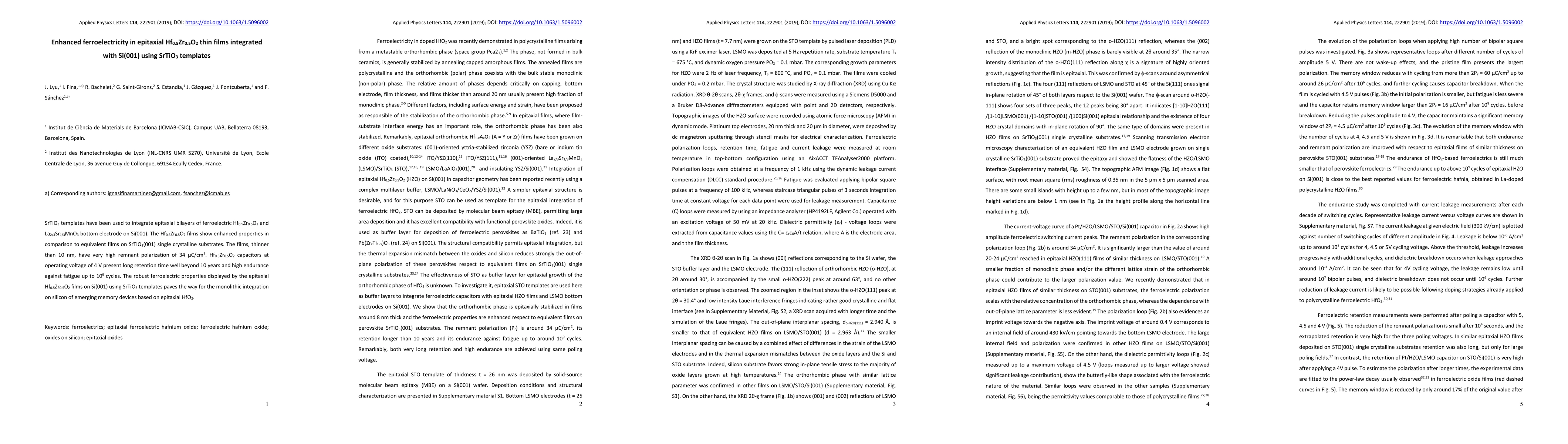 This study demonstrates the integration of epitaxial Hf0.5Zr0.5O2 thin films on Si(001) using SrTiO3 templates, resulting in enhanced ferroelectric properties with high remnant polarization and long retention time, paving the way for advanced memory devices on silicon.