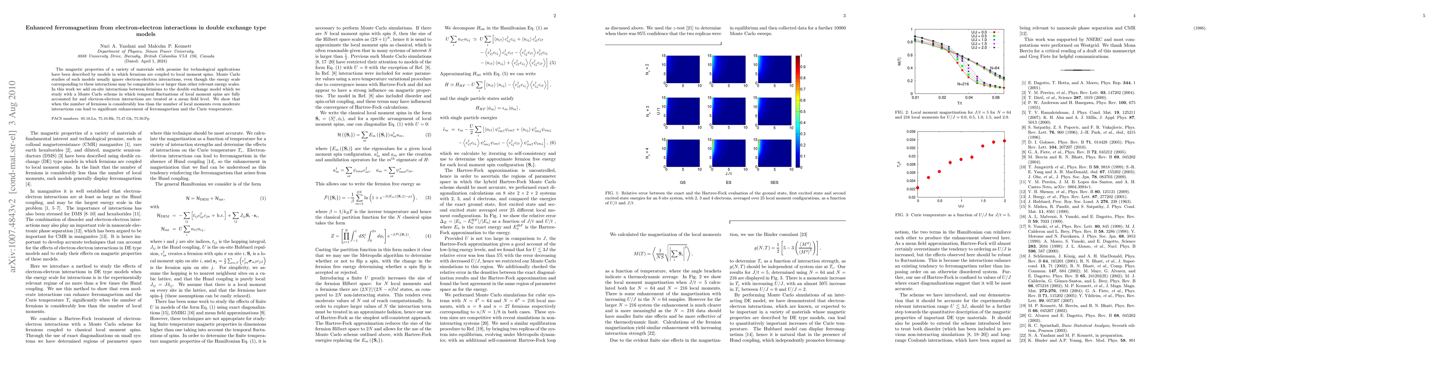 Researchers studied how adding interactions between electrons in a material can significantly enhance its ferromagnetism, even with few local moment spins, leading to higher Curie temperatures.