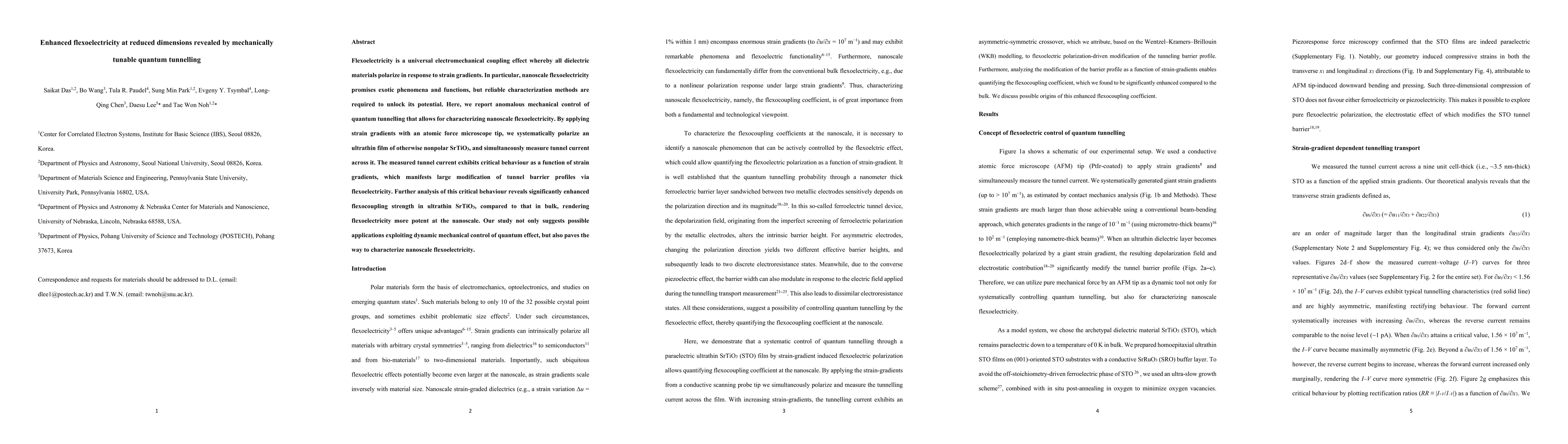 This paper reports on the enhanced flexoelectricity in ultrathin SrTiO$_3$ films, demonstrated through mechanically tunable quantum tunnelling. The study reveals significantly greater flexocoupling strength in nanoscale materials compared to bulk, suggesting new applications and methods for characterizing nanoscale flexoelectricity.