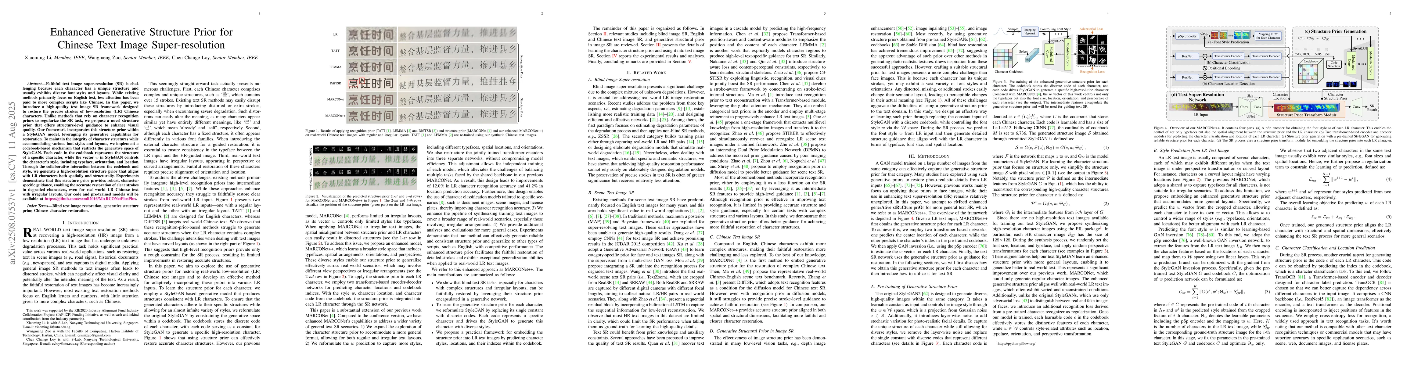 The paper presents an enhanced generative structure prior for Chinese text image super-resolution, incorporated within a StyleGAN model and guided by a codebook to maintain character structure integrity.