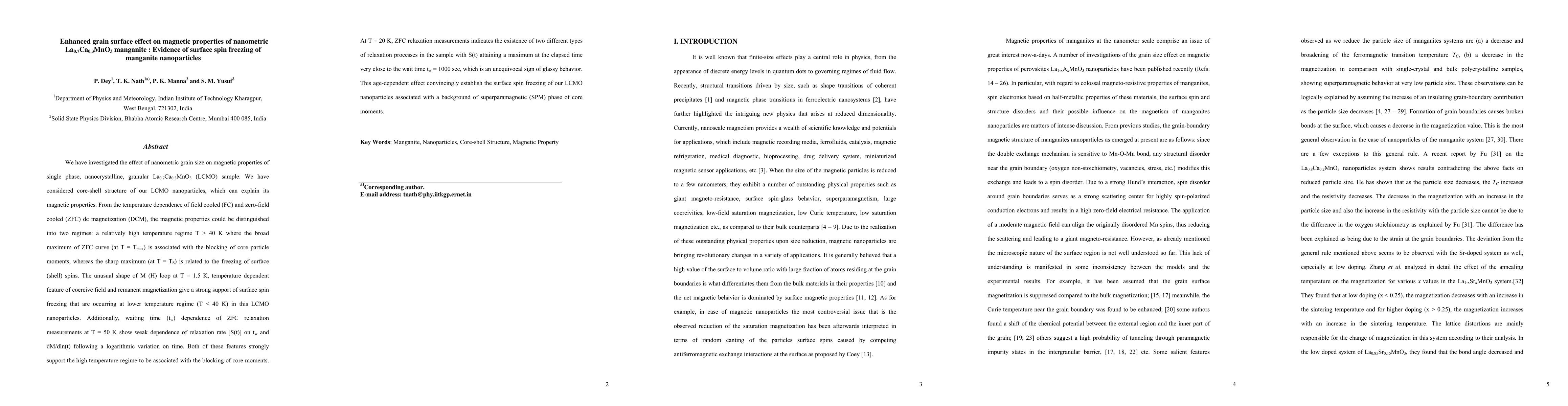 We have investigated the effect of nanometric grain size on magnetic properties of single phase, nanocrystalline, granular La0.7Ca0.3MnO3 (LCMO) sample. We have considered core-shell structure of our LCMO nanoparticles, which can explain its magnetic properties. From the temperature dependence of field cooled (FC) and zero-field cooled (ZFC) dc magnetization (DCM), the magnetic properties could be distinguished into two regimes: a relatively high temperature regime T > 40 K where the broad maximum of ZFC curve (at T = Tmax) is associated with the blocking of core particle moments, whereas the sharp maximum (at T = TS) is related to the freezing of surface (shell) spins. The unusual shape of M (H) loop at T = 1.5 K, temperature dependent feature of coercive field and remanent magnetization give a strong support of surface spin freezing that are occurring at lower temperature regime (T < 40 K) in this LCMO nanoparticles. Additionally, waiting time (tw) dependence of ZFC relaxation measurements at T = 50 K show weak dependence of relaxation rate [S(t)] on tw and dM/dln(t) following a logarithmic variation on time. Both of these features strongly support the high temperature regime to be associated with the blocking of core moments. At T = 20 K, ZFC relaxation measurements indicates the existence of two different types of relaxation processes in the sample with S(t) attaining a maximum at the elapsed time very close to the wait time tw = 1000 sec, which is an unequivocal sign of glassy behavior. This age-dependent effect convincingly establish the surface spin freezing of our LCMO nanoparticles associated with a background of superparamagnetic (SPM) phase of core moments.