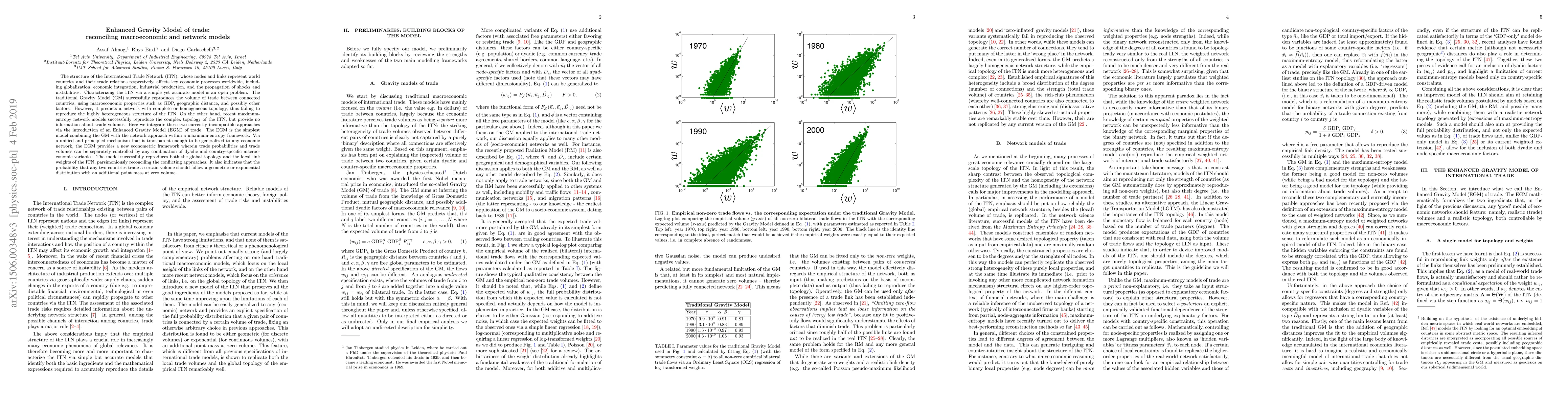 The structure of the International Trade Network (ITN), whose nodes and links represent world countries and their trade relations respectively, affects key economic processes worldwide, including globalization, economic integration, industrial production, and the propagation of shocks and instabilities. Characterizing the ITN via a simple yet accurate model is an open problem. The traditional Gravity Model (GM) successfully reproduces the volume of trade between connected countries, using macroeconomic properties such as GDP, geographic distance, and possibly other factors. However, it predicts a network with complete or homogeneous topology, thus failing to reproduce the highly heterogeneous structure of the ITN. On the other hand, recent maximum-entropy network models successfully reproduce the complex topology of the ITN, but provide no information about trade volumes. Here we integrate these two currently incompatible approaches via the introduction of an Enhanced Gravity Model (EGM) of trade. The EGM is the simplest model combining the GM with the network approach within a maximum-entropy framework. Via a unified and principled mechanism that is transparent enough to be generalized to any economic network, the EGM provides a new econometric framework wherein trade probabilities and trade volumes can be separately controlled by any combination of dyadic and country-specific macroeconomic variables. The model successfully reproduces both the global topology and the local link weights of the ITN, parsimoniously reconciling the conflicting approaches. It also indicates that the probability that any two countries trade a certain volume should follow a geometric or exponential distribution with an additional point mass at zero volume.