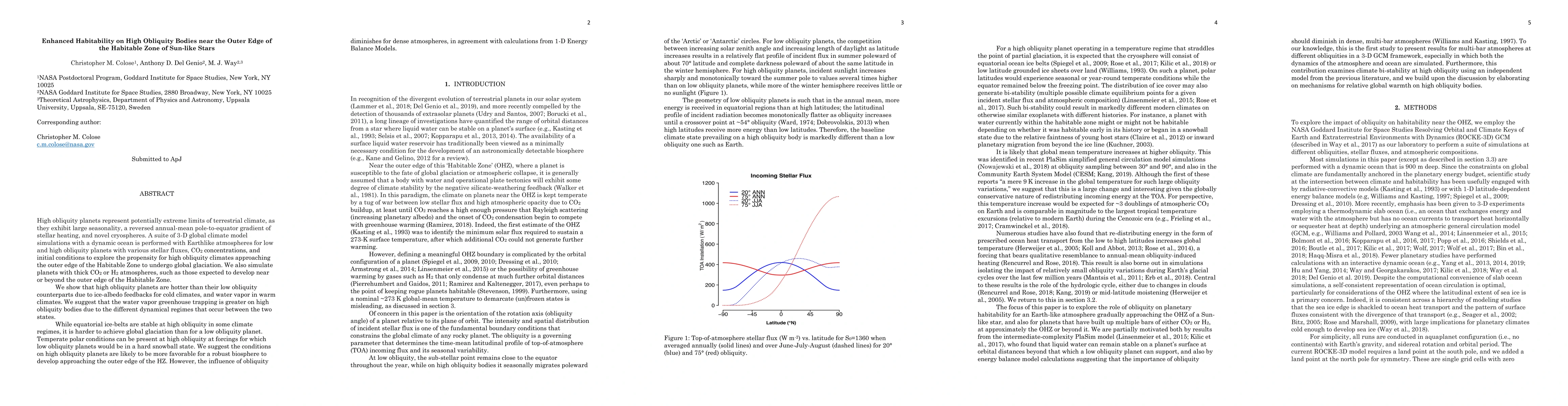 This paper explores the climate dynamics of high obliquity planets near the outer edge of the habitable zone using 3-D global climate models. It finds that high obliquity planets are generally warmer than low obliquity ones due to enhanced water vapor greenhouse effects, suggesting more favorable conditions for a biosphere.