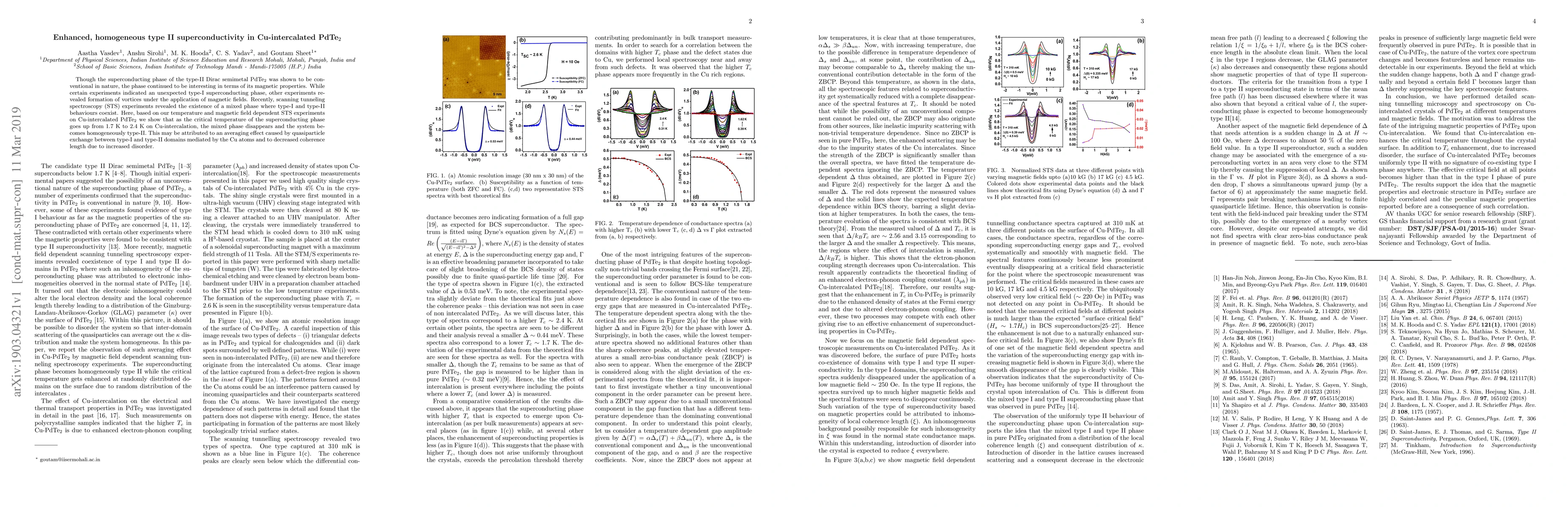 Research shows that Cu-intercalation of PdTe2 enhances its superconductivity to homogeneous type II behavior, with the mixed phase disappearing as temperature increases from 1.7K to 2.4K.