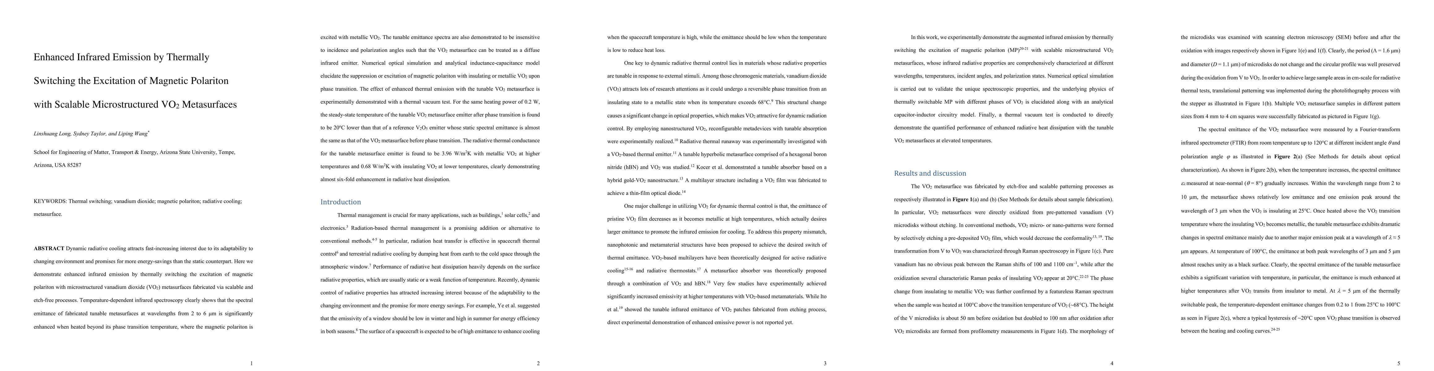 This paper demonstrates enhanced infrared emission through thermally switching magnetic polariton excitation using scalable microstructured VO2 metasurfaces. The metasurfaces show a significant increase in spectral emittance upon heating beyond VO2's phase transition temperature, achieving almost six-fold enhancement in radiative heat dissipation compared to a static V2O5 emitter.