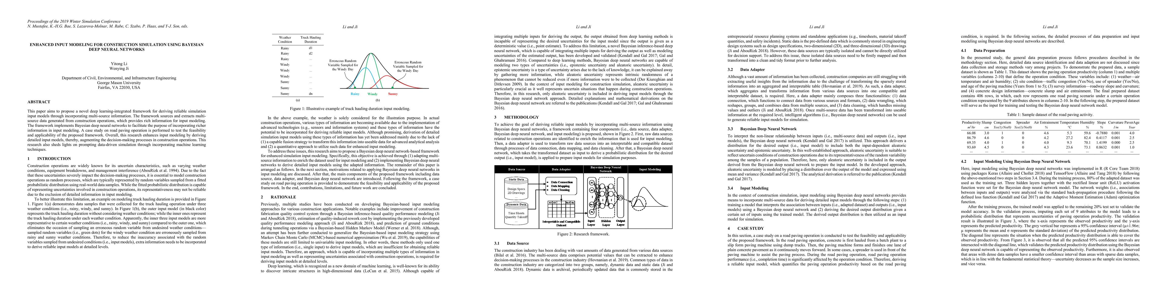This paper introduces a deep learning framework using Bayesian neural networks to enhance construction simulation input modeling by integrating multi-source data. A case study on road paving demonstrates the framework's effectiveness in improving decision-making and data-driven simulation.