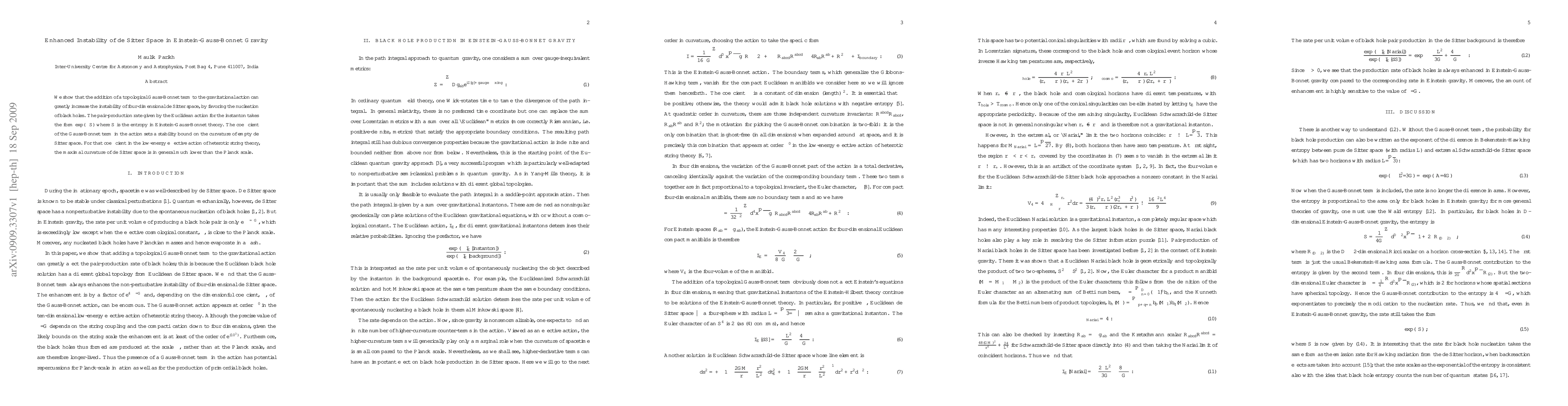 This paper demonstrates that incorporating a Gauss-Bonnet term into Einstein gravity enhances the instability of four-dimensional de Sitter space, promoting black hole nucleation. The stability of de Sitter space in this modified theory is constrained by the coefficient of the Gauss-Bonnet term, which lowers the maximal curvature significantly below the Planck scale.