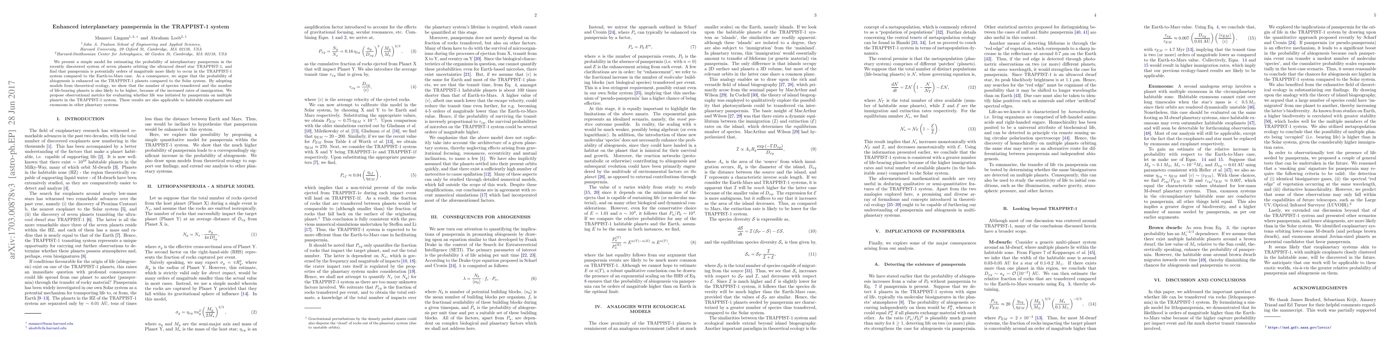 We present a simple model for estimating the probability of interplanetary panspermia in the recently discovered system of seven planets orbiting the ultracool dwarf star TRAPPIST-1, and find that panspermia is potentially orders of magnitude more likely to occur in the TRAPPIST-1 system compared to the Earth-to-Mars case. As a consequence, we argue that the probability of abiogenesis is enhanced on the TRAPPIST-1 planets compared to the Solar system. By adopting models from theoretical ecology, we show that the number of species transferred and the number of life-bearing planets is also likely to be higher, because of the increased rates of immigration. We propose observational metrics for evaluating whether life was initiated by panspermia on multiple planets in the TRAPPIST-1 system. These results are also applicable to habitable exoplanets and exomoons in other planetary systems.