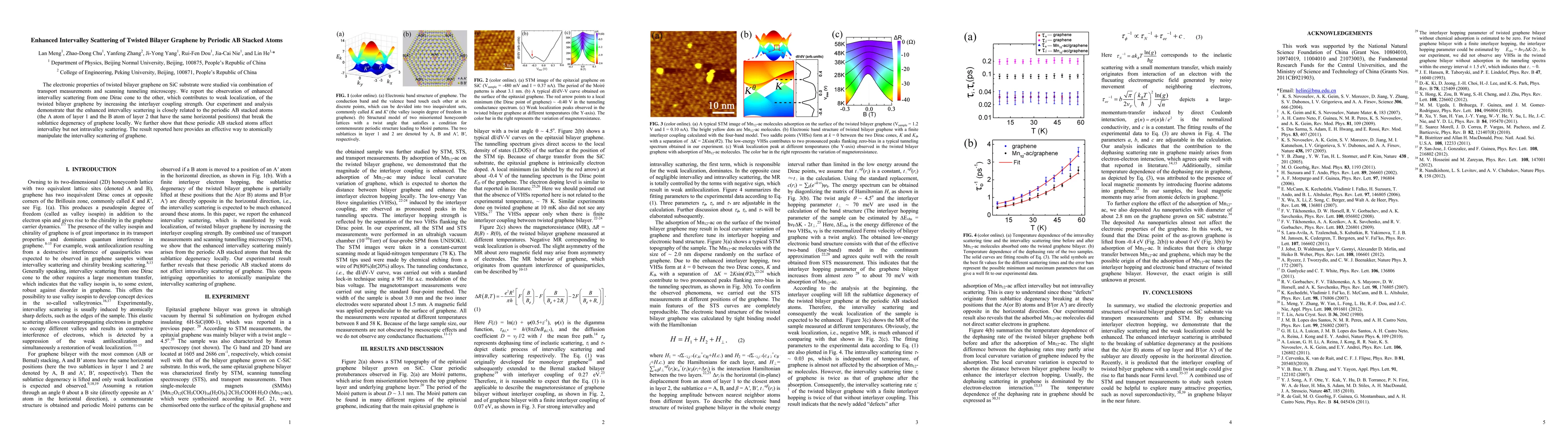 The electronic properties of twisted bilayer graphene on SiC substrate were studied via combination of transport measurements and scanning tunneling microscopy. We report the observation of enhanced intervalley scattering from one Dirac cone to the other, which contributes to weak localization, of the twisted bilayer graphene by increasing the interlayer coupling strength. Our experiment and analysis demonstrate that the enhanced intervalley scattering is closely related to the periodic AB stacked atoms (the A atom of layer 1 and the B atom of layer 2 that have the same horizontal positions) that break the sublattice degeneracy of graphene locally. We further show that these periodic AB stacked atoms affect intervalley but not intravalley scattering. The result reported here provides an effective way to atomically manipulate the intervalley scattering of graphene.