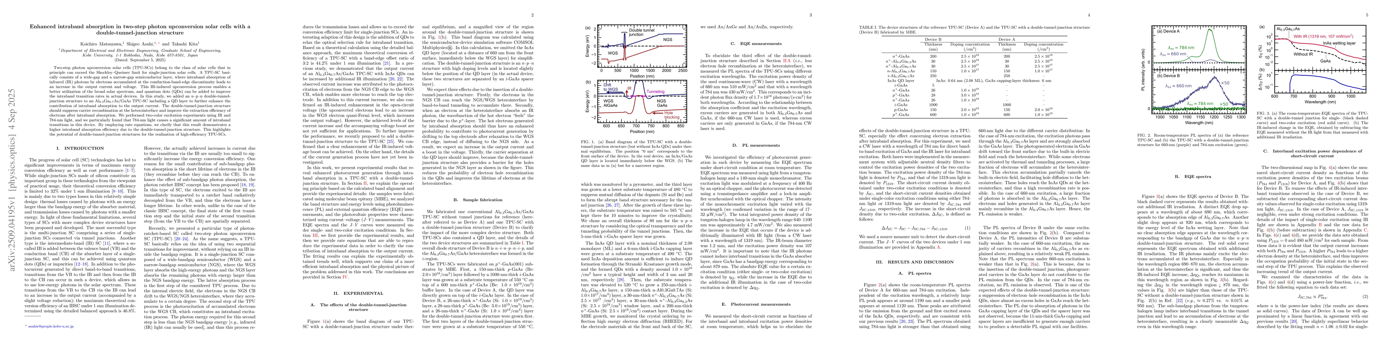 Two-step photon upconversion solar cells (TPU-SCs) belong to the class of solar cells that in principle can exceed the Shockley--Queisser limit for single-junction solar cells. A TPU-SC basically consists of a wide-gap and a narrow-gap semiconductor layer, where intraband absorption of infrared (IR) photons by electrons accumulated at the conduction-band-edge discontinuity leads to an increase in the output current and voltage. This IR-induced upconversion process enables a better utilization of the broad solar spectrum, and quantum dots (QDs) can be added to improve the intraband transition rates in actual devices. In this study, we added an n--p--n double-tunnel-junction structure to an $\mathrm{Al_{0.3}Ga_{0.7}As}$/GaAs TPU-SC including a QD layer to further enhance the contribution of intraband absorption to the output current. The double-tunnel-junction structure should suppress carrier recombination at the heterointerface and improve the extraction efficiency of electrons after intraband absorption. We performed two-color excitation experiments using IR and 784-nm light, and we particularly found that 784-nm light causes a significant amount of intraband transitions in this device. By employing rate equations, we clarify that this result demonstrates a higher intraband absorption efficiency due to the double-tunnel-junction structure. This highlights the potential of double-tunnel-junction structures for the realization of high-efficiency TPU-SCs.