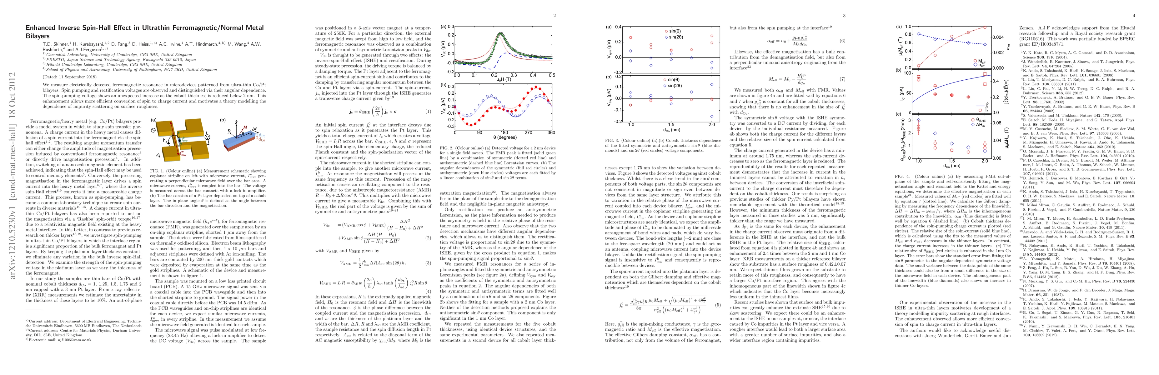 Summary: The study reveals an enhanced inverse spin-Hall effect in ultrathin Co/Pt bilayers, showing increased spin-pumping voltages as cobalt thickness decreases below 2 nm, which improves spin-to-charge current conversion and prompts theoretical modeling of impurity scattering influenced by surface roughness.