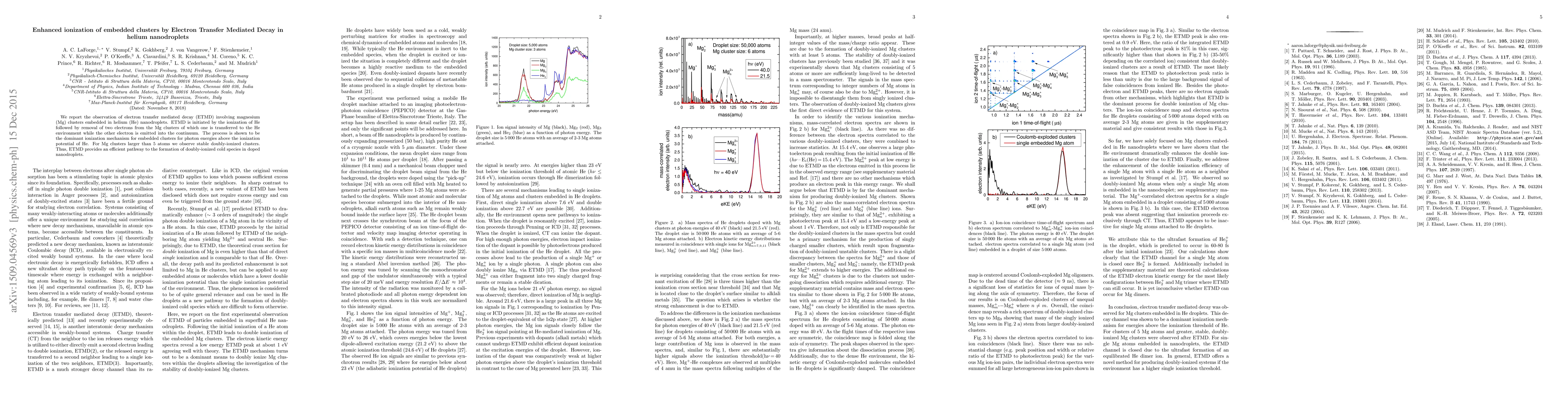 The discovery of electron transfer mediated decay as a dominant ionization mechanism for Mg clusters embedded in He nanodroplets.