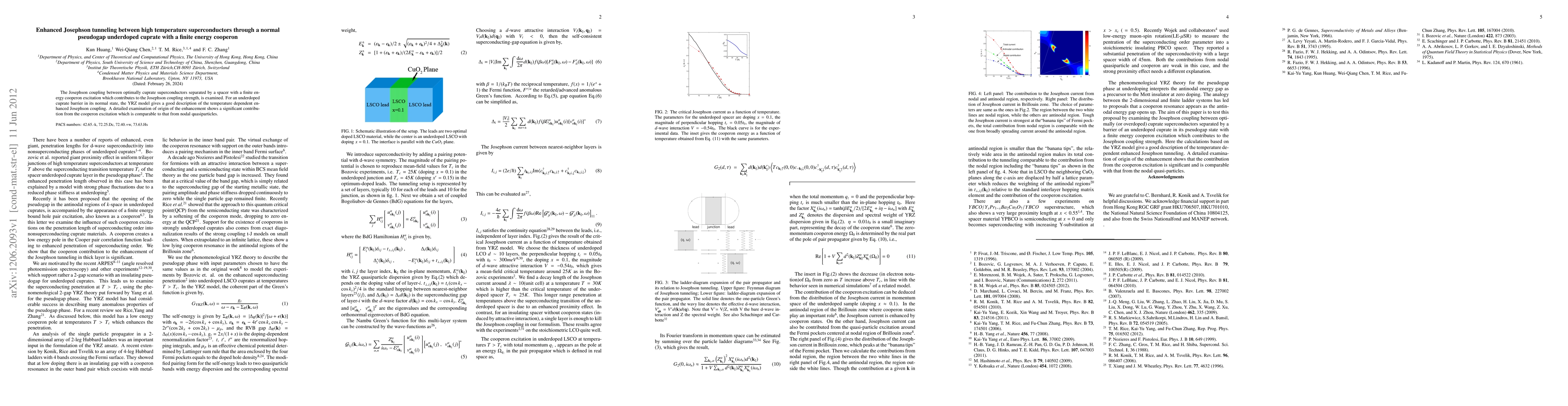 This paper investigates enhanced Josephson tunneling between high-temperature superconductors using an underdoped cuprate barrier with a finite energy cooperon. The YRZ model effectively describes the temperature-dependent enhancement, attributing significant contributions to both the cooperon excitation and nodal quasiparticles.
