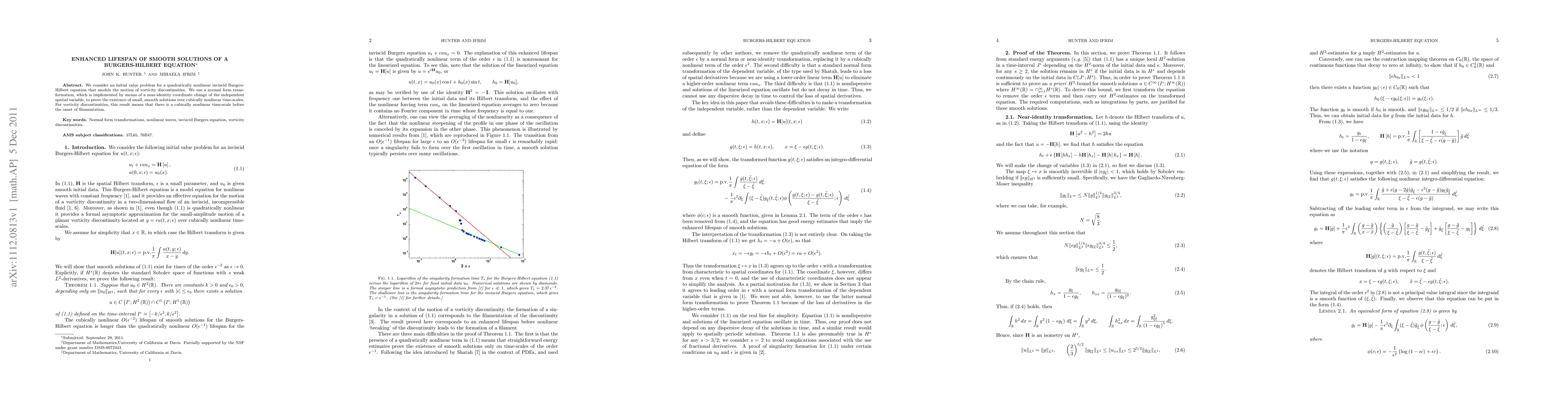 This research proves the existence of small, smooth solutions for a specific quadratically nonlinear Burgers-Hilbert equation over cubically nonlinear time-scales using a normal form transformation. It implies a cubically nonlinear time-scale before filamentation for vorticity discontinuities.