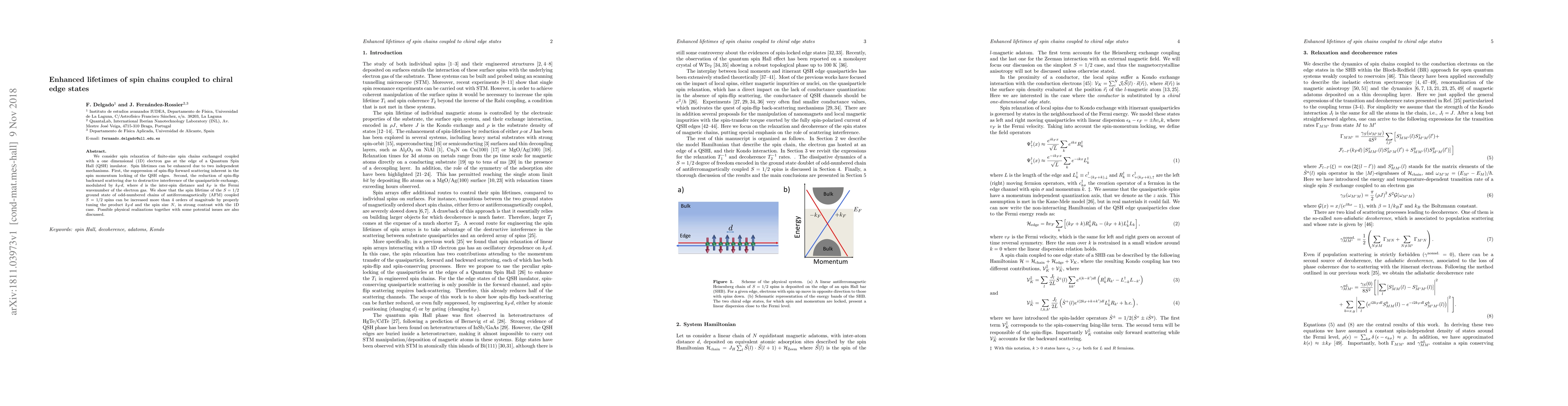 This paper investigates spin relaxation in spin chains coupled with chiral edge states of a Quantum Spin Hall insulator, revealing enhanced spin lifetimes through suppression of spin-flip scattering and destructive interference effects. The study shows that spin lifetimes can be increased by over four orders of magnitude by tuning the Fermi wavenumber and inter-spin distance.